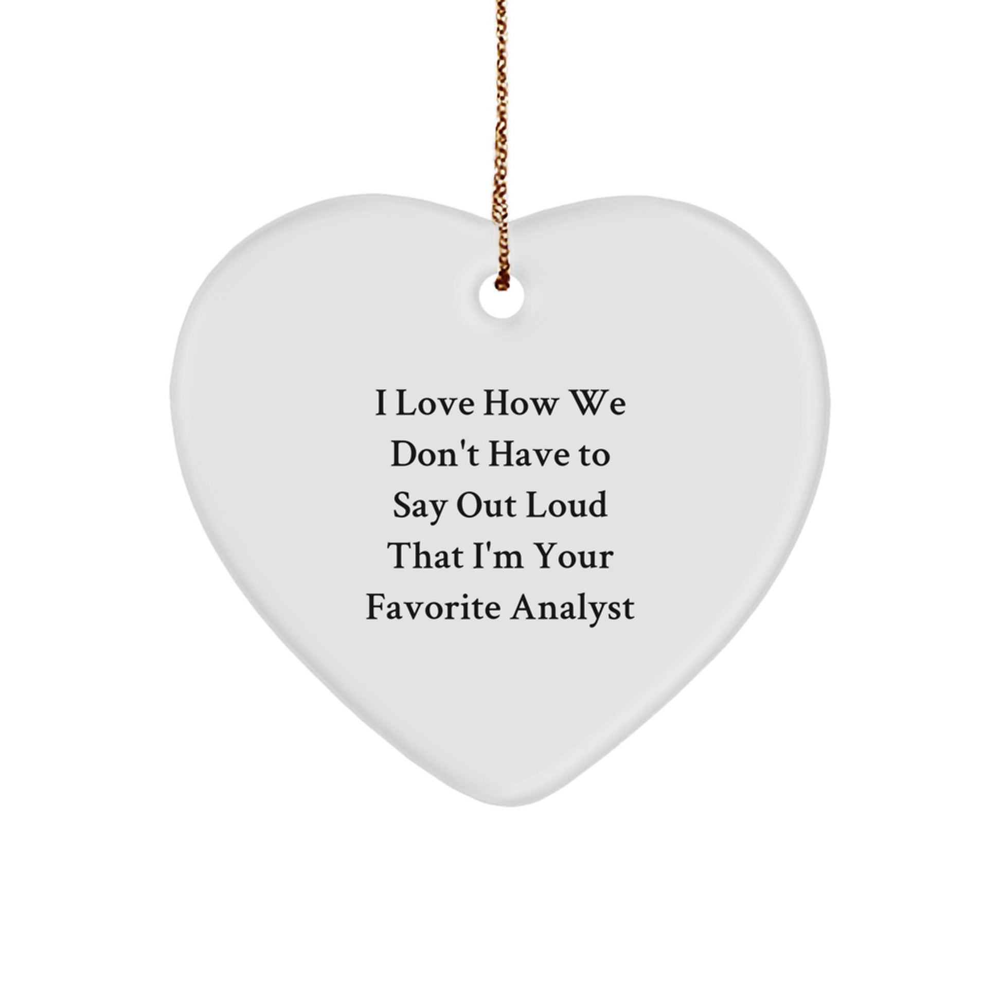 ¿Cansado de darle los mismos regalos a tu analista favorito? ¡No busques más! Nuestros divertidos regalos navideños para analistas son la manera perfecta de demostrar tu aprecio y buen humor. Este adorno de corazón con la frase "Me encanta que no tengamos que decirlo en voz alta: soy tu analista favorito" es un regalo original y considerado que cualquier analista amaría.