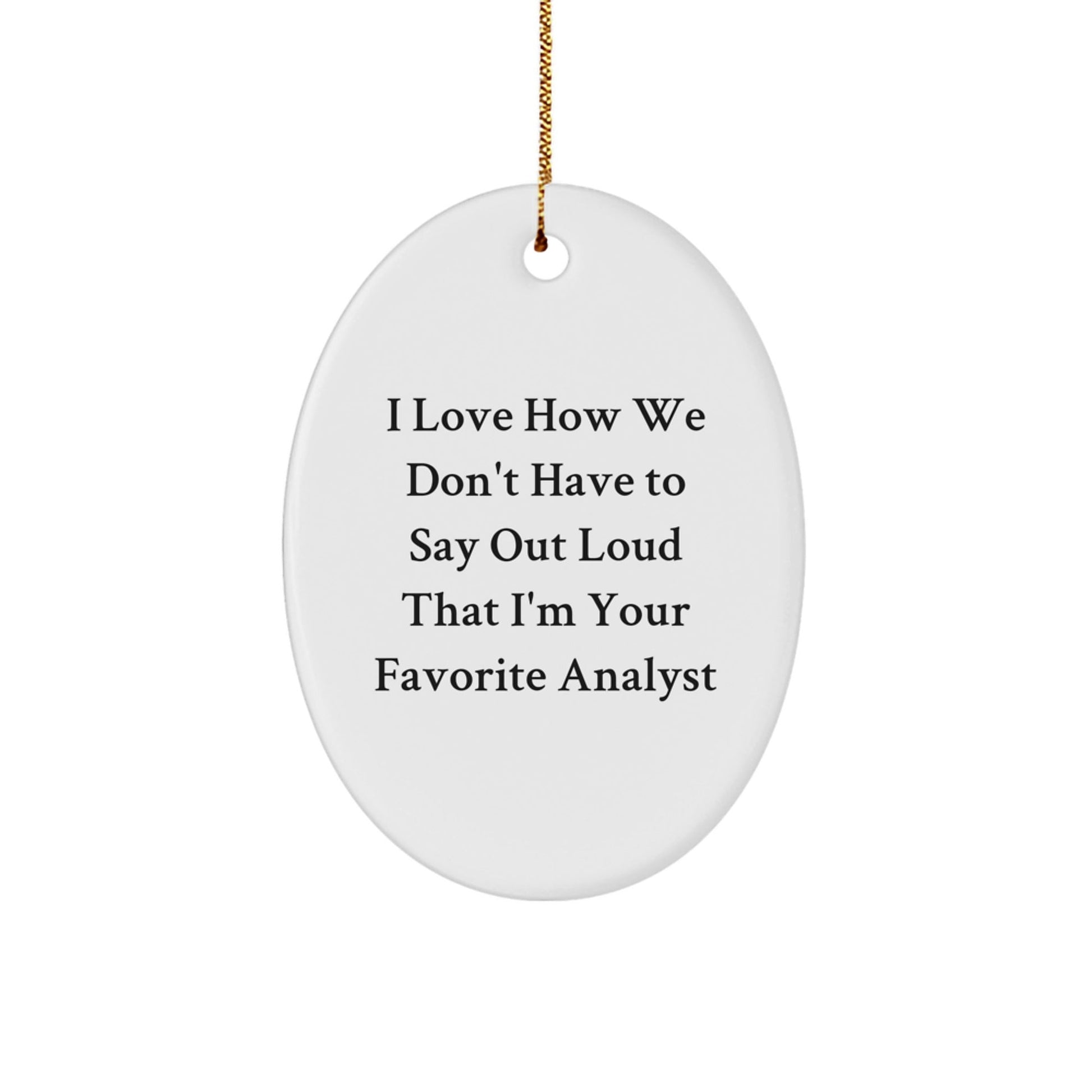 - Consigue hoy tu adorno ovalado de analista "Me encanta cómo no tenemos que decirlo en voz alta: soy tu favorito" y haz que esta Navidad sea inolvidable: perfecto para regalos de amigos o compañeros de trabajo a tu analista favorito.