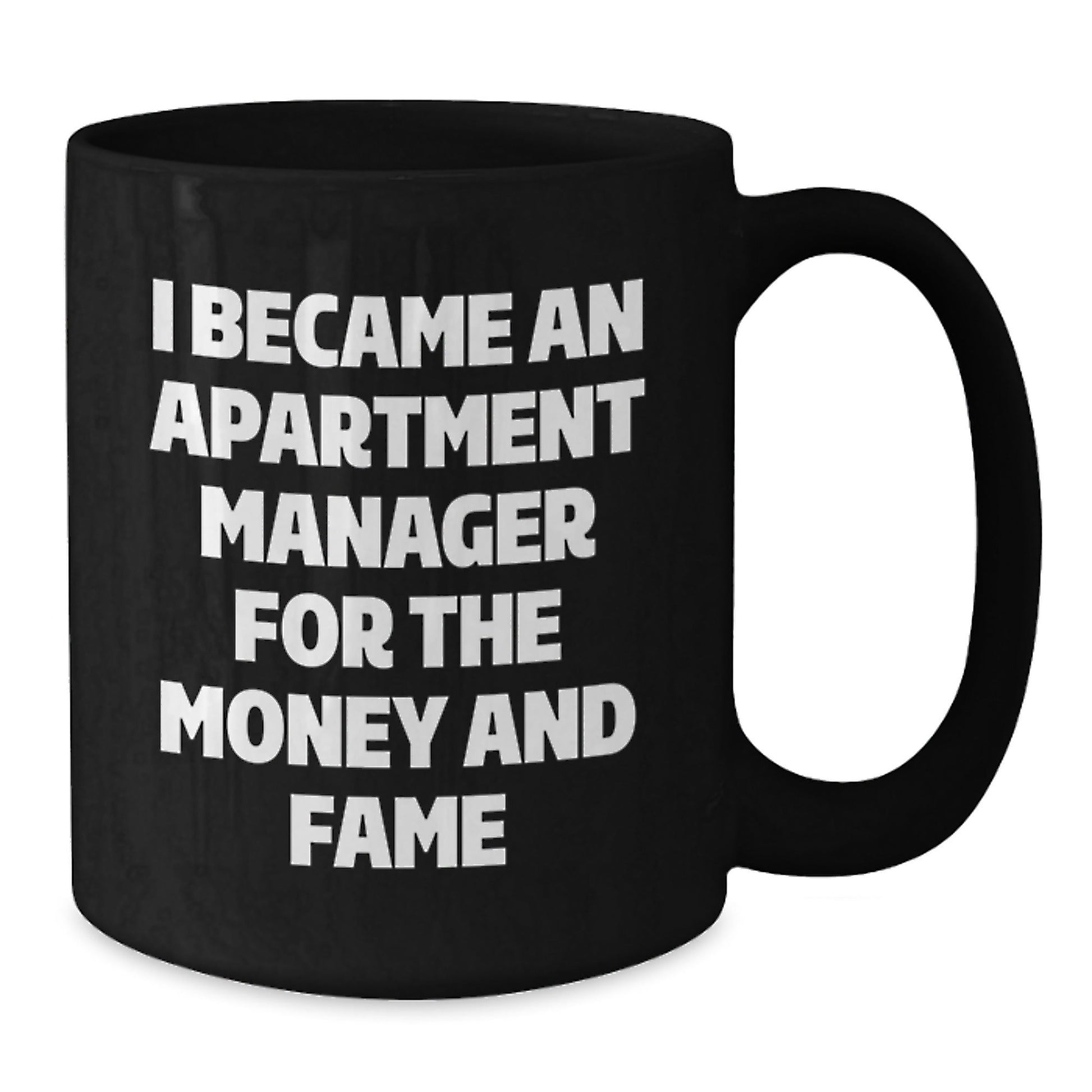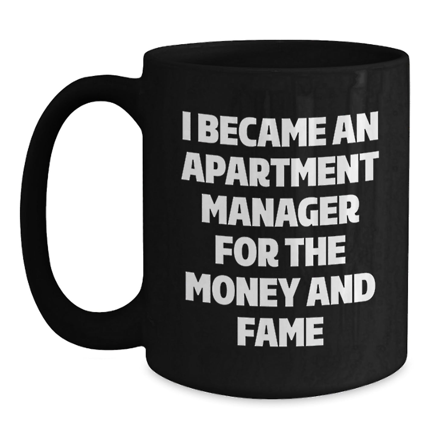 - Empieza el día con una sensación de logro con esta exclusiva taza de café negra «Me convertí en administrador de apartamentos por dinero y fama», perfecta para administradores de apartamentos que se enorgullecen de su trabajo. La taza de cerámica de 325 ml o 430 ml está diseñada para mantener tus bebidas calientes a la temperatura ideal, lo que la convierte en una excelente adición a tu rutina matutina.