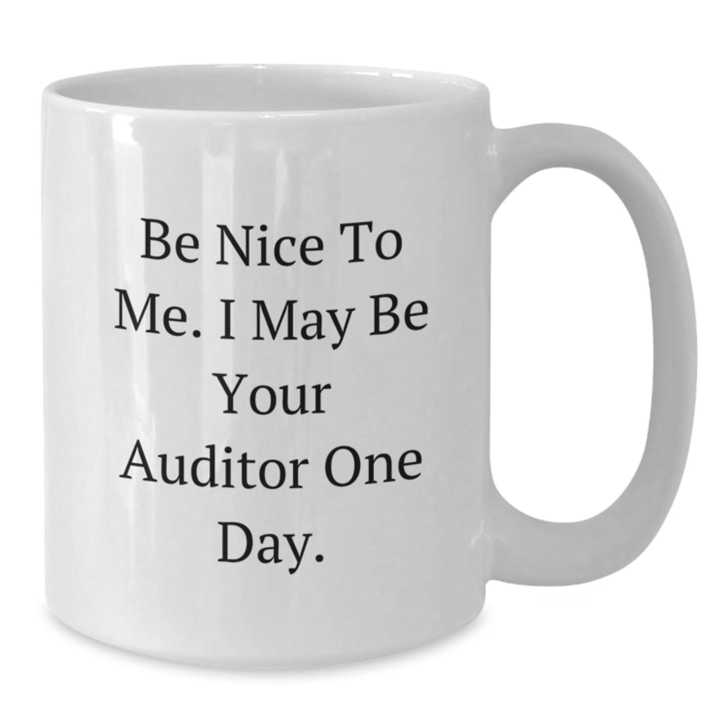 Si buscas un regalo único para el Auditor de tu vida, ¡no busques más! Esta divertida taza de café con leche es la manera perfecta de demostrar tu aprecio y buen humor. La frase "Sé amable conmigo. Quizás algún día seré tu Auditor" seguro le sacará una sonrisa.