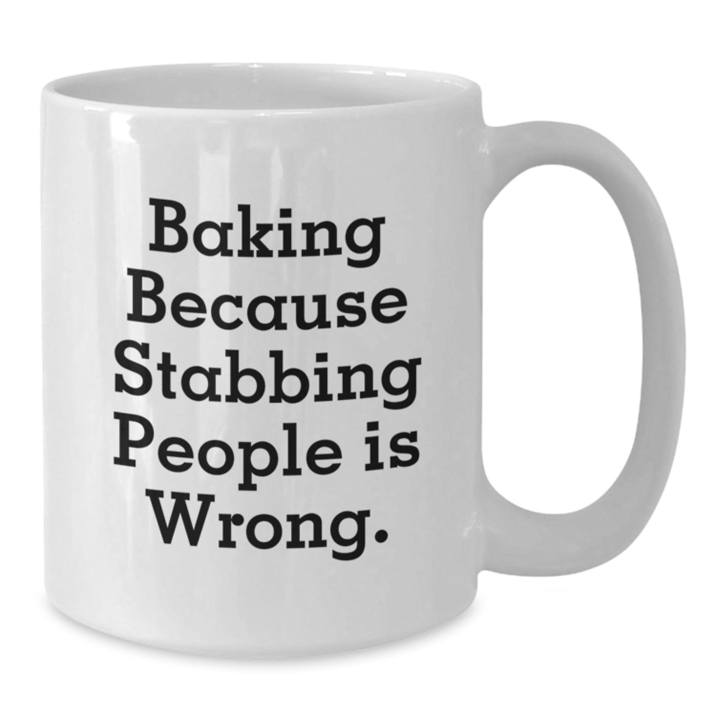 - La divertida cita "Hornear porque apuñalar a la gente está mal" seguramente les sacará una sonrisa.