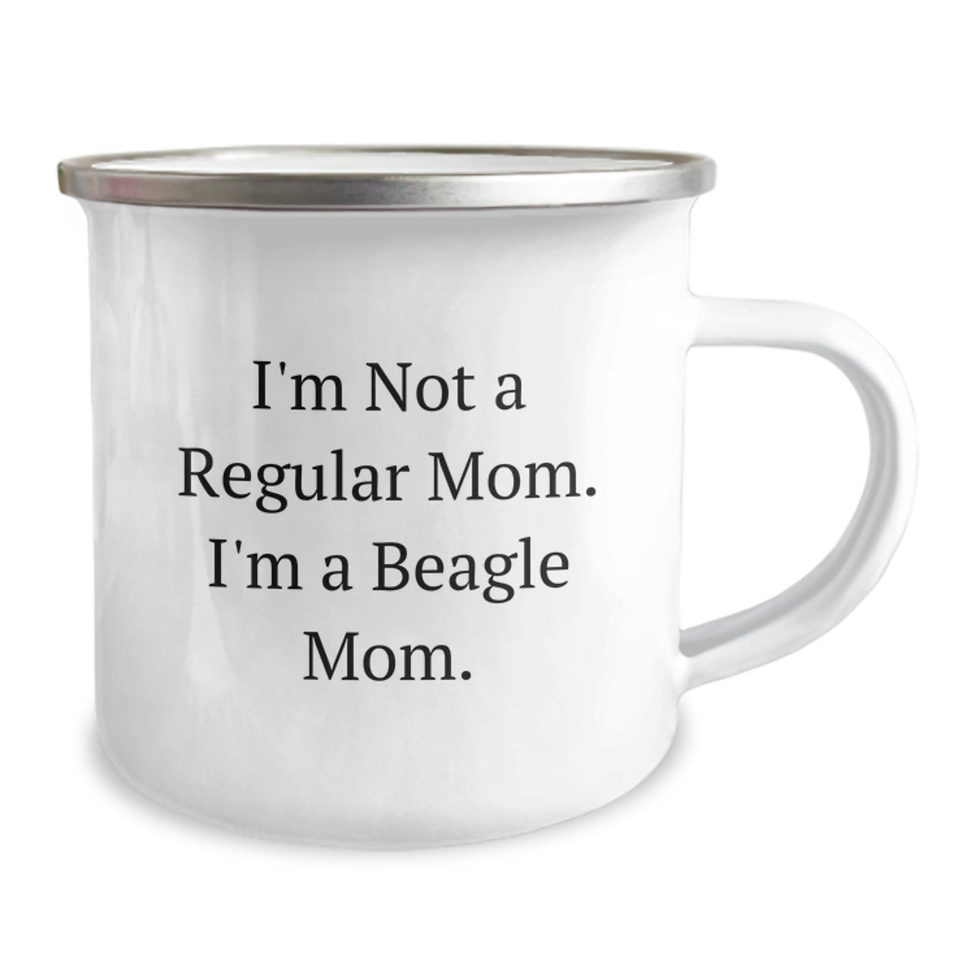 - Comienza tus aventuras de camping con un adorable compañero beagle a tu lado y una taza de camping con la frase "No soy una mamá normal. Soy una mamá beagle", perfecta tanto para amantes de las actividades al aire libre como para los amantes de los perros. Con su capacidad de 355 ml, acero inoxidable con acabado esmaltado e impresión permanente, esta taza está diseñada para durar y resistir la intemperie.