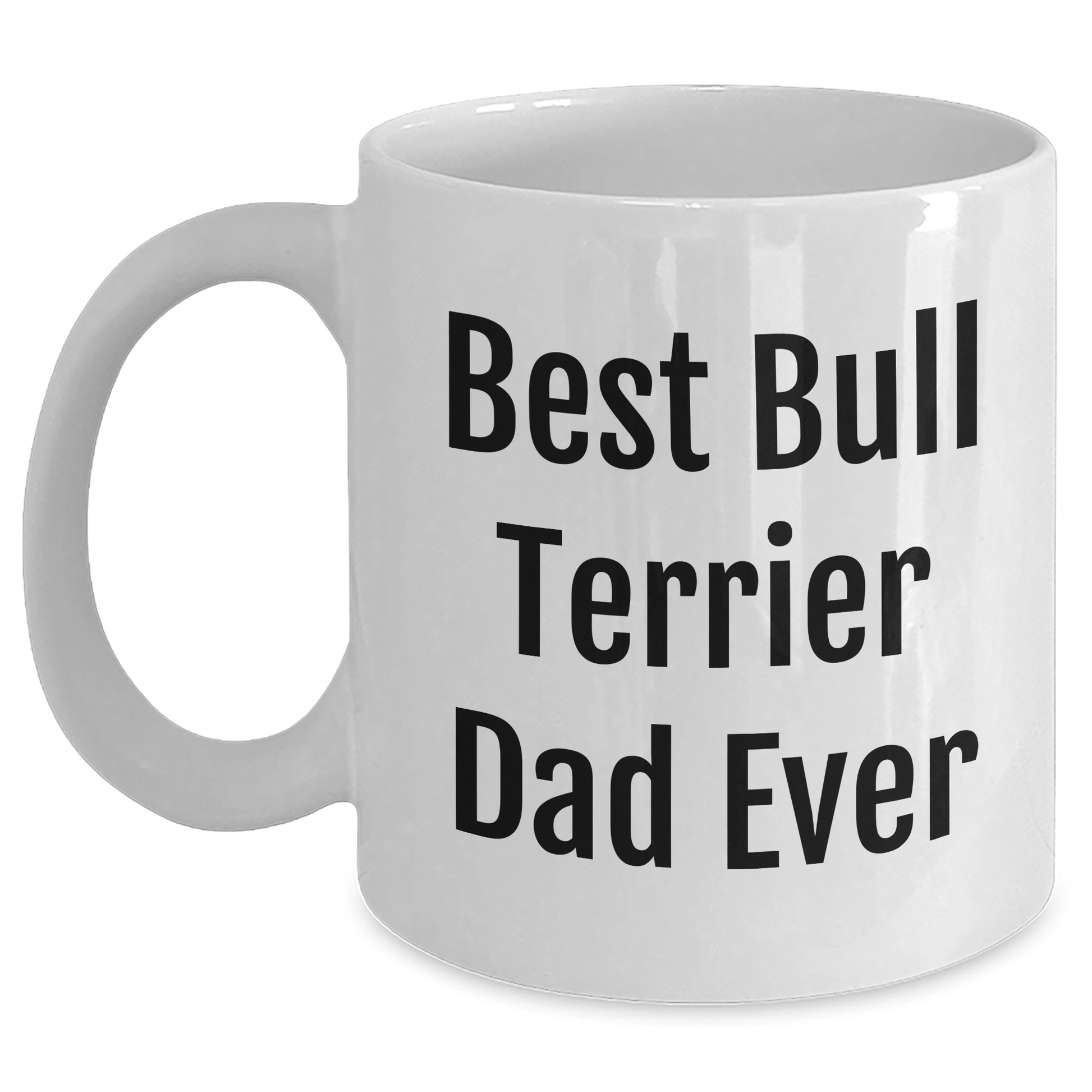 - Demuestra tu amor por los Bull Terriers con esta elegante taza de café. La frase "El mejor papá Bull Terrier" es una forma conmovedora de expresar tu aprecio por tu padre o pareja. Su material cerámico garantiza durabilidad y longevidad, lo que la convierte en un complemento perfecto para tu rutina diaria.
