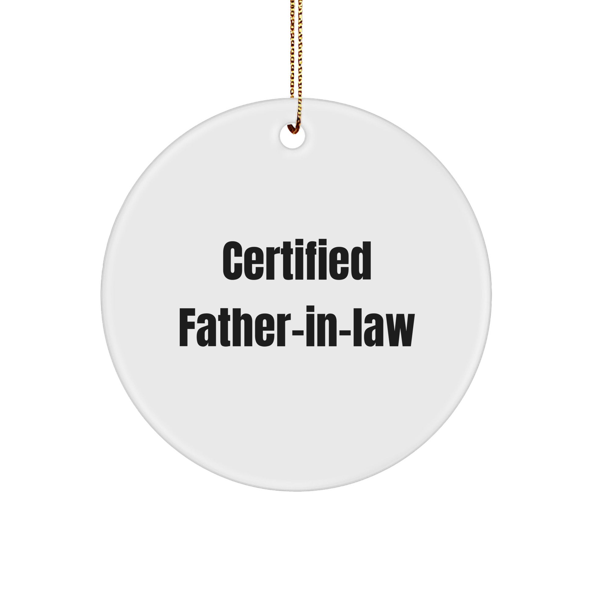 - Regálele risas y alegría en estas fiestas y haga que su suegro se sienta especial con este divertido adorno circular de suegro certificado. ¡Obtenga el suyo hoy y comience a decorar!