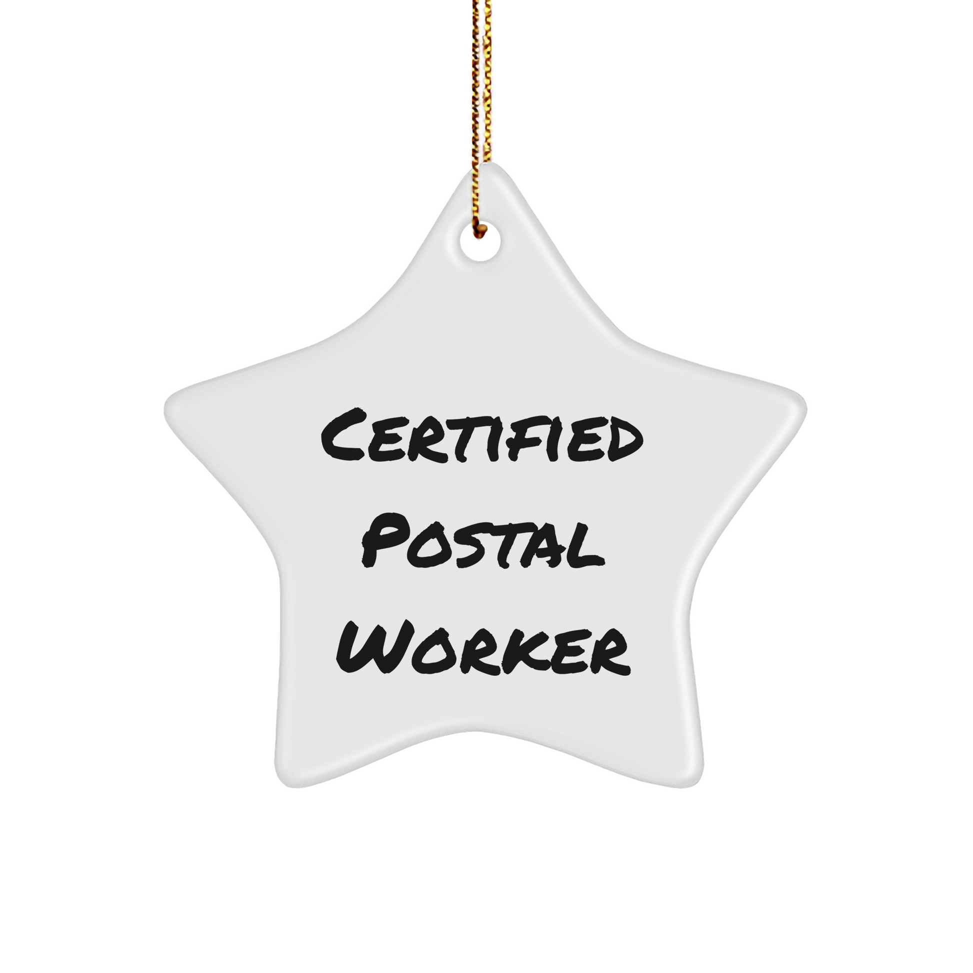 - Este adorno de estrella de trabajador postal certificado es una adición divertida y peculiar a su decoración navideña, y seguramente será un tema de conversación en cualquier reunión navideña.