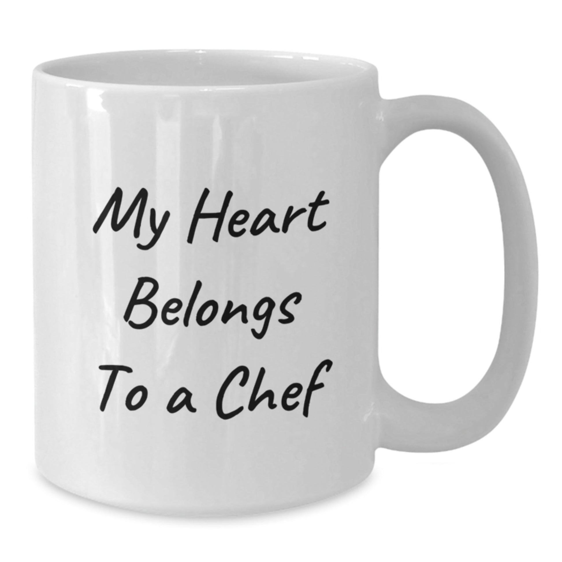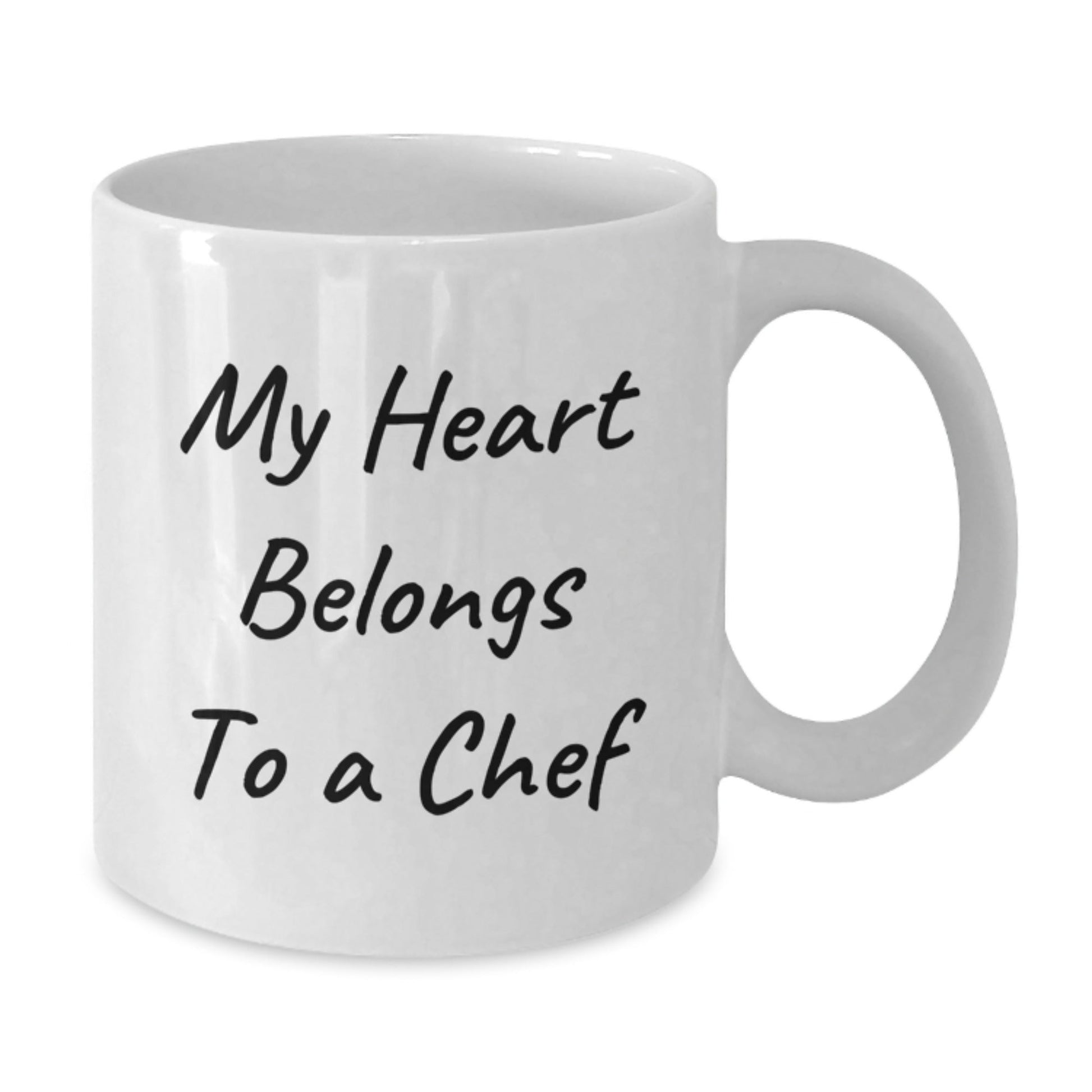 Nuestros divertidos regalos de chef para él, de parte de nuestros amigos, son la taza de café blanca "Mi corazón pertenece a un chef". Son la manera perfecta de demostrar tu aprecio por el chef de tu vida. ¿A qué esperas? ¡No te la pierdas y haz que su cumpleaños sea inolvidable!
