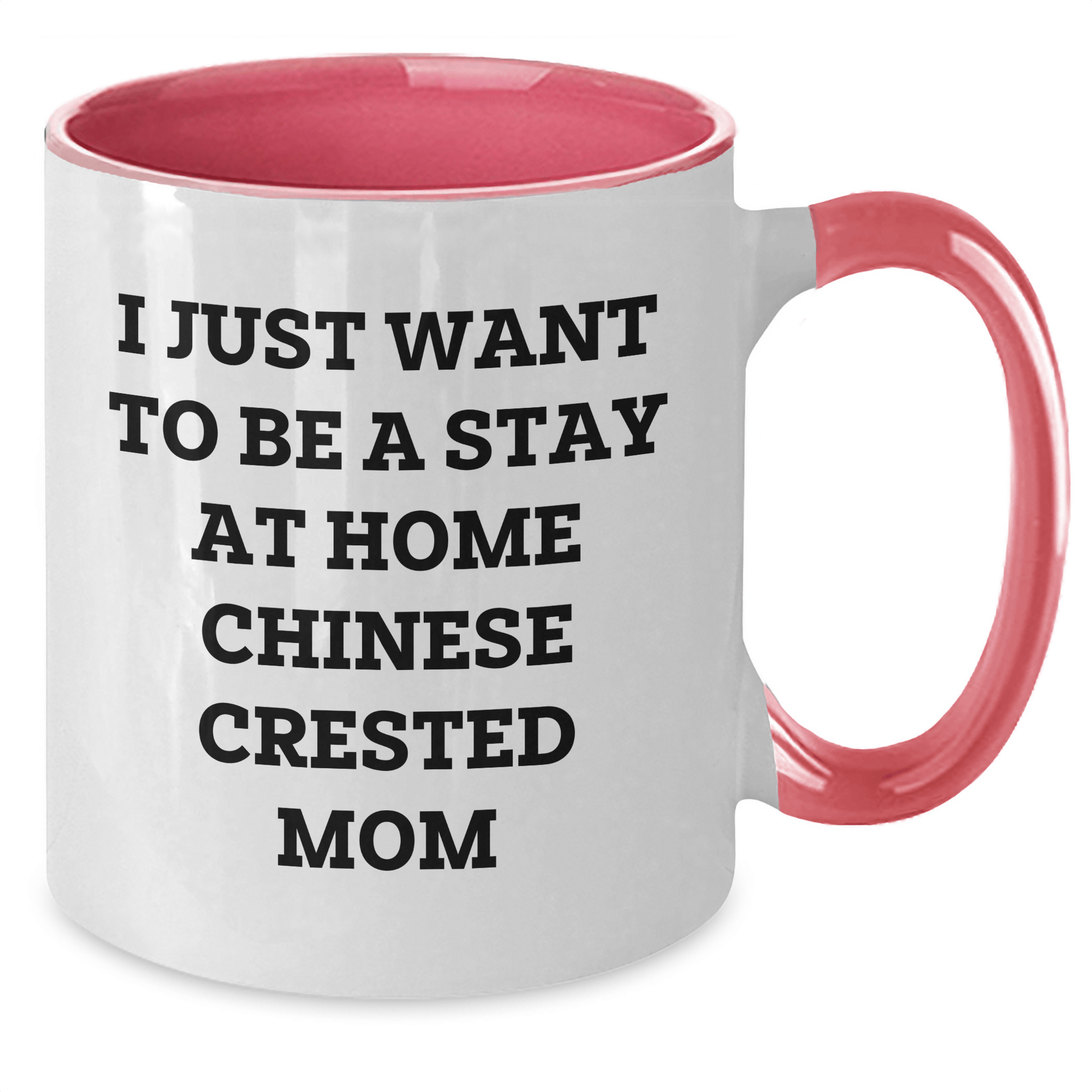 - Prepárese para comenzar bien el día con nuestras exclusivas tazas de café de dos tonos, que presentan la divertida cita "Solo quiero ser una mamá crestada china que se queda en casa": ¡el regalo ideal para los padres y entusiastas de los perros crestados chinos por igual!