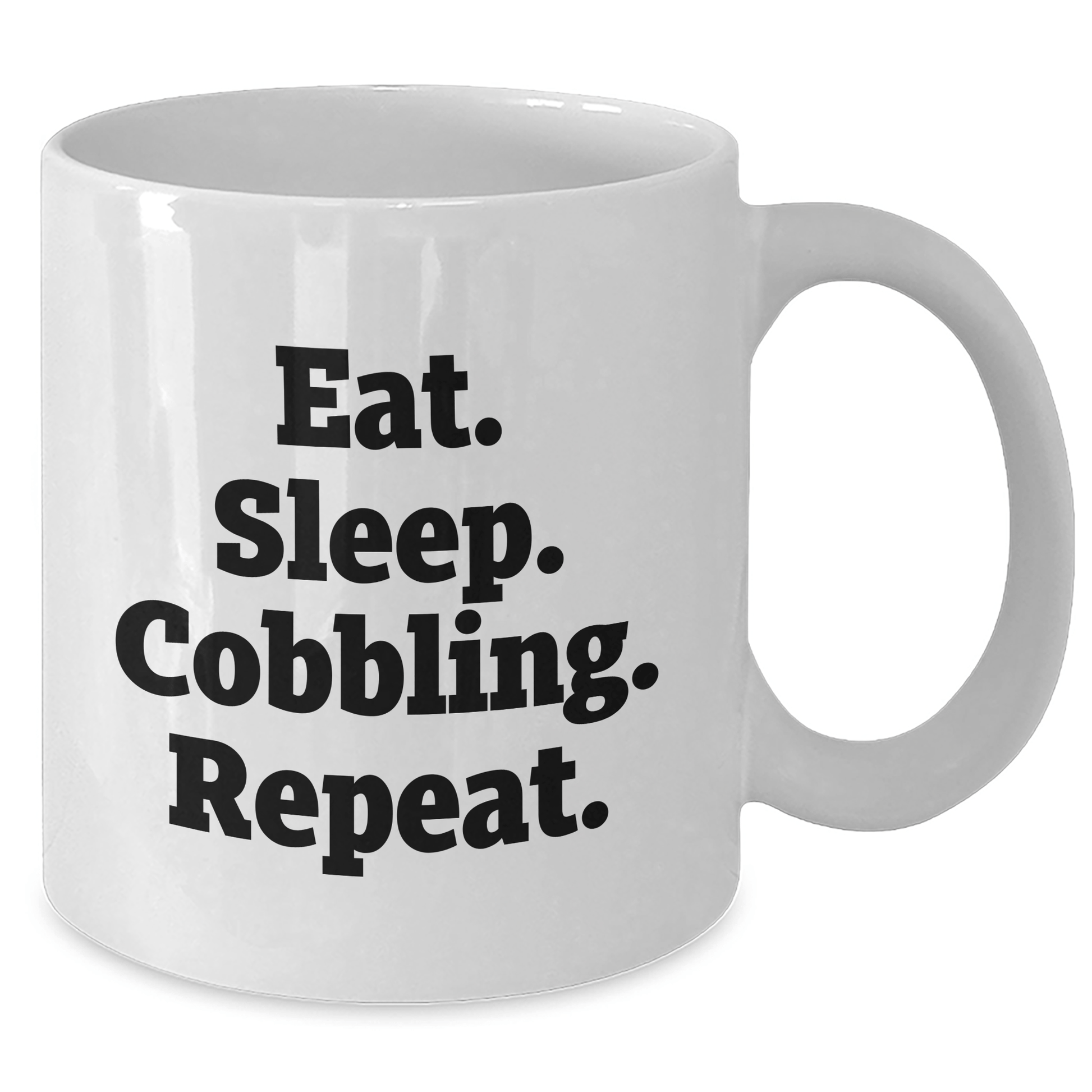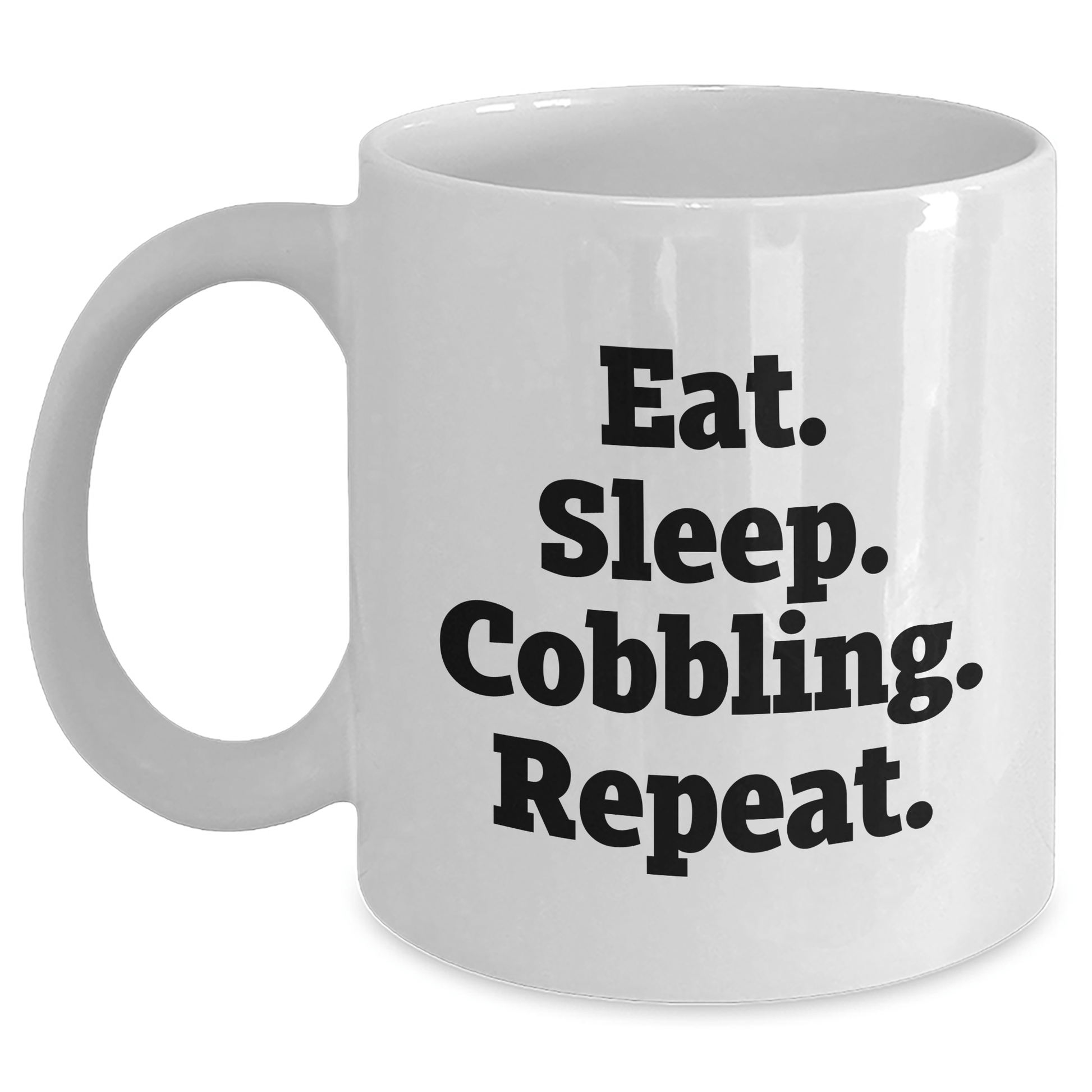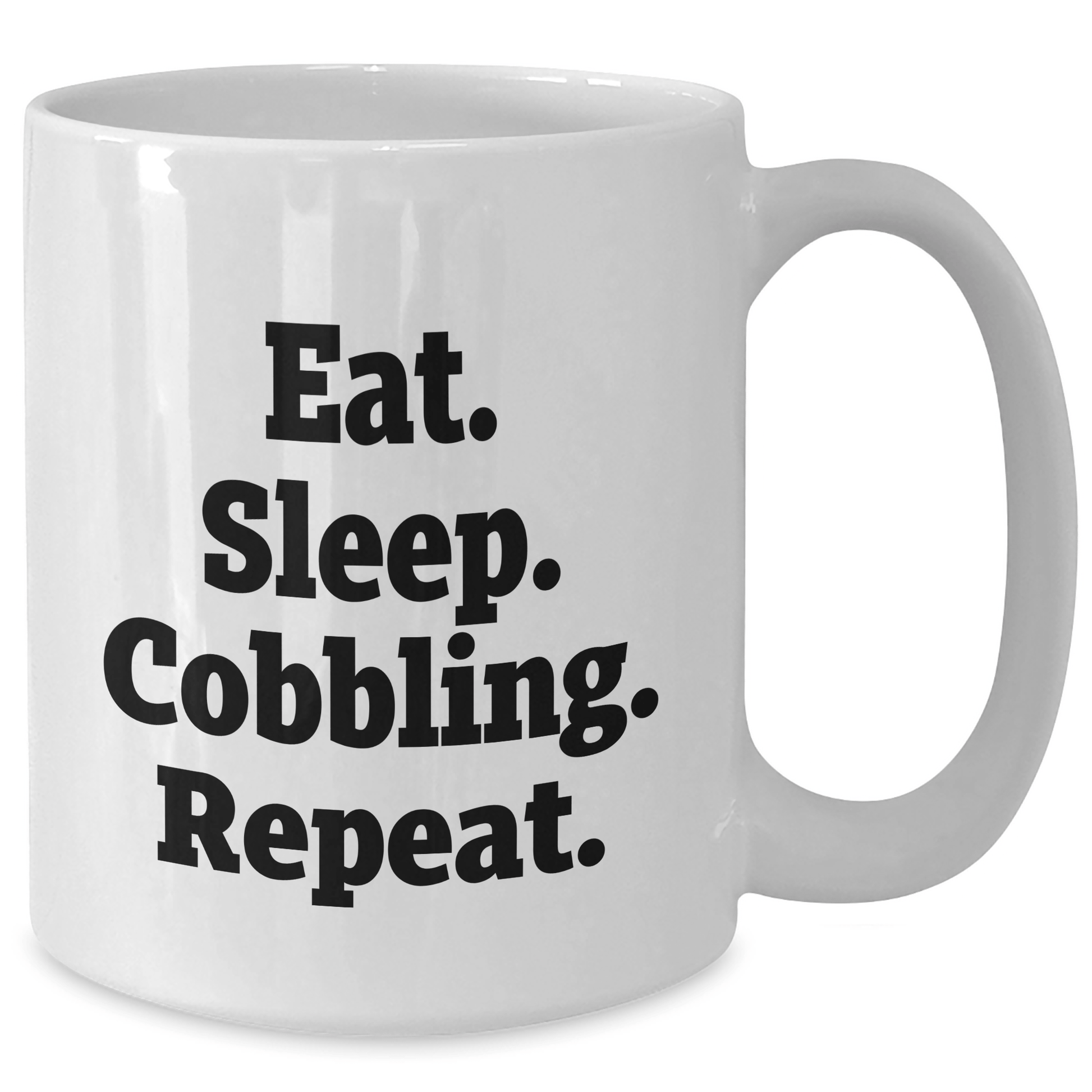 ¿Por qué conformarte con un regalo aburrido y genérico cuando puedes hacer un detalle único y considerado que demuestre tu cariño? Pide hoy mismo esta taza de café blanca "Come. Duerme. Cobbling. Repite. ¡y conviértela en un regalo memorable para esa persona especial que te gusta Cobbling!
