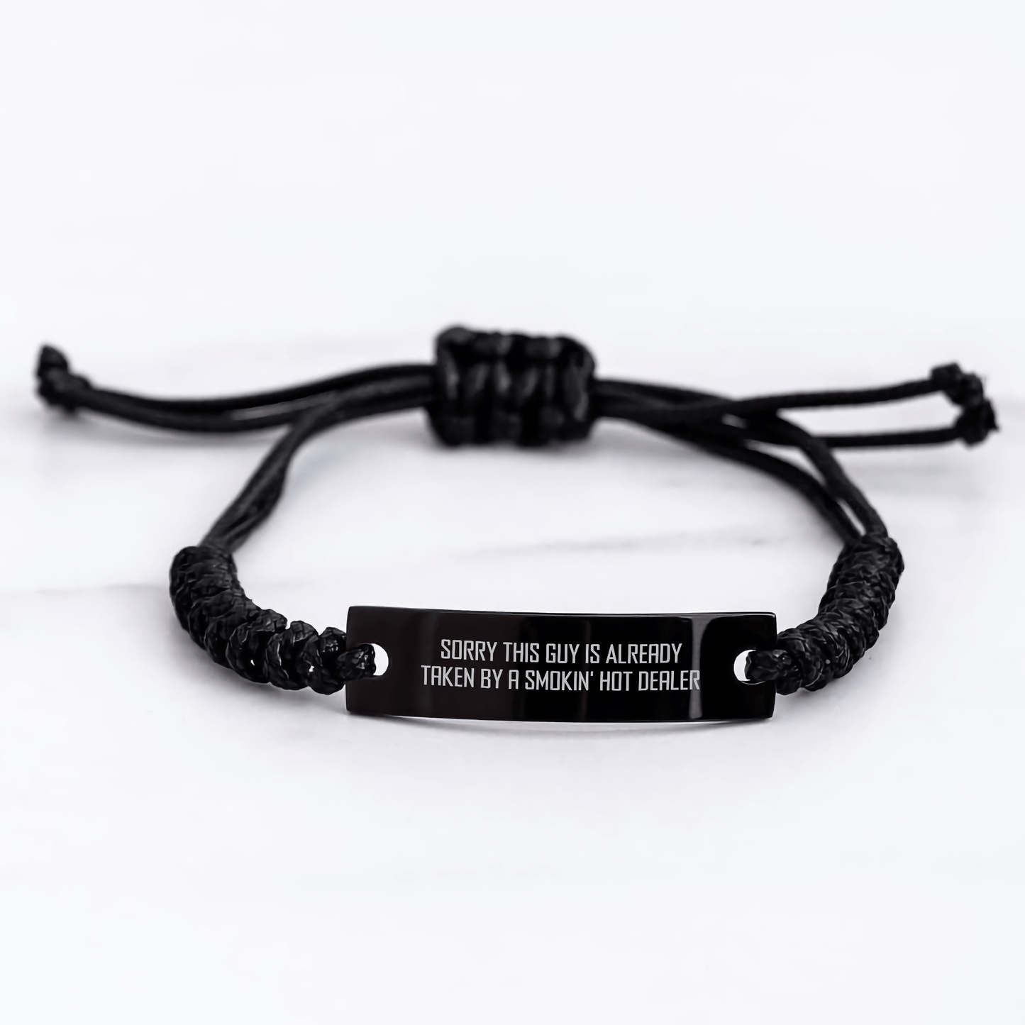 Este regalo es perfecto para enviar a amigos, compañeros de trabajo o familiares que aprecian el buen sentido del humor. La pulsera de cuerda se ajusta de 8,5 a 25 cm, lo que la hace adecuada para cualquier tamaño de muñeca. Viene en una hermosa bolsa de organza, ideal para cualquier ocasión. ¿A qué esperas? ¡Consigue este divertido regalo de Dealer hoy mismo y alegra el día a alguien!