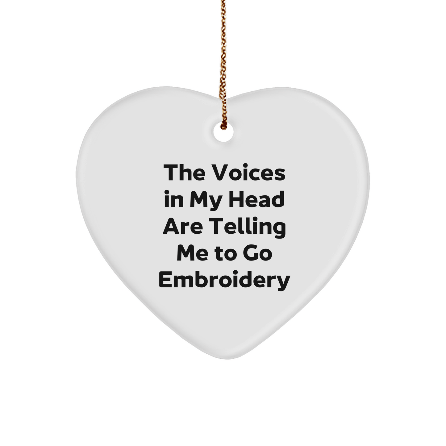 Este adorno en forma de corazón es una excelente manera de demostrar tu amor y aprecio por el bordado, y su divertida frase le da un toque de humor y fantasía. Ya sea que lo regale a un compañero aficionado al bordado o lo guarde para usted, este adorno sin duda le sacará una sonrisa. ¿A qué esperas? ¡Consigue hoy mismo tu adorno de corazón "Las voces en mi cabeza me dicen que me ponga a bordar" y comparte la alegría del bordado esta Navidad!