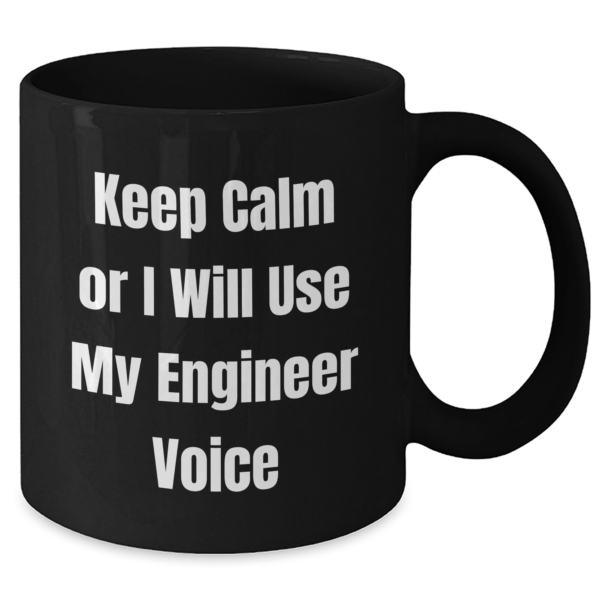 ¿Buscas un regalo de graduación único para el ingeniero de tu vida? ¡No busques más! Esta divertida taza de café negro es la manera perfecta de demostrar tu agradecimiento por su esfuerzo y dedicación. Con su frase "Mantén la calma o usaré mi voz de ingeniero", esta taza seguro le sacará una sonrisa.