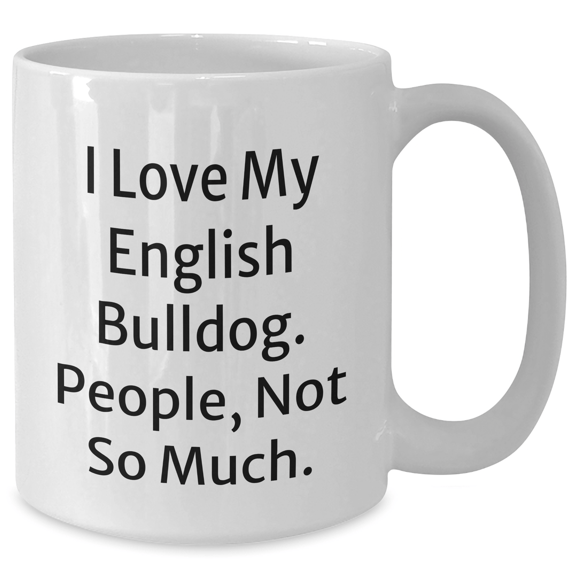 - Demuestra tu amor por los Bulldogs Ingleses con esta original taza de café con leche, perfecta para regalar en el Día del Padre a cualquier amante de los Bulldogs Ingleses. La frase "Amo a mi Bulldog Inglés. A la gente, no tanto" es una forma divertida de expresar lo que sientes por tu querida mascota. La taza de cerámica es apta para microondas y lavavajillas, lo que facilita su limpieza y uso.