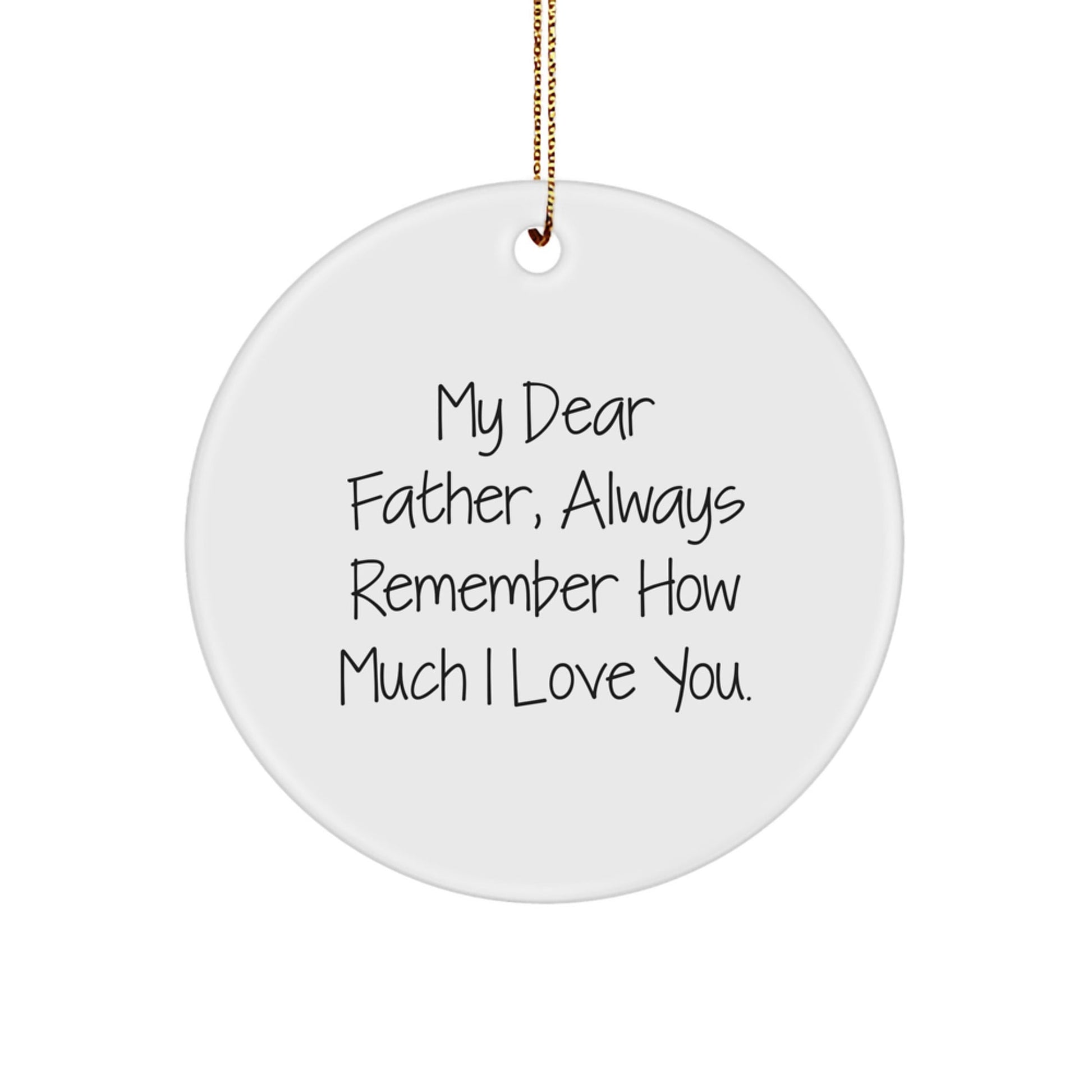 Esta Navidad, regala a tu padre un recuerdo que atesorará por muchos años. ¡Pide hoy mismo nuestro adorno circular "Mi querido padre, recuerda siempre cuánto te quiero"!
