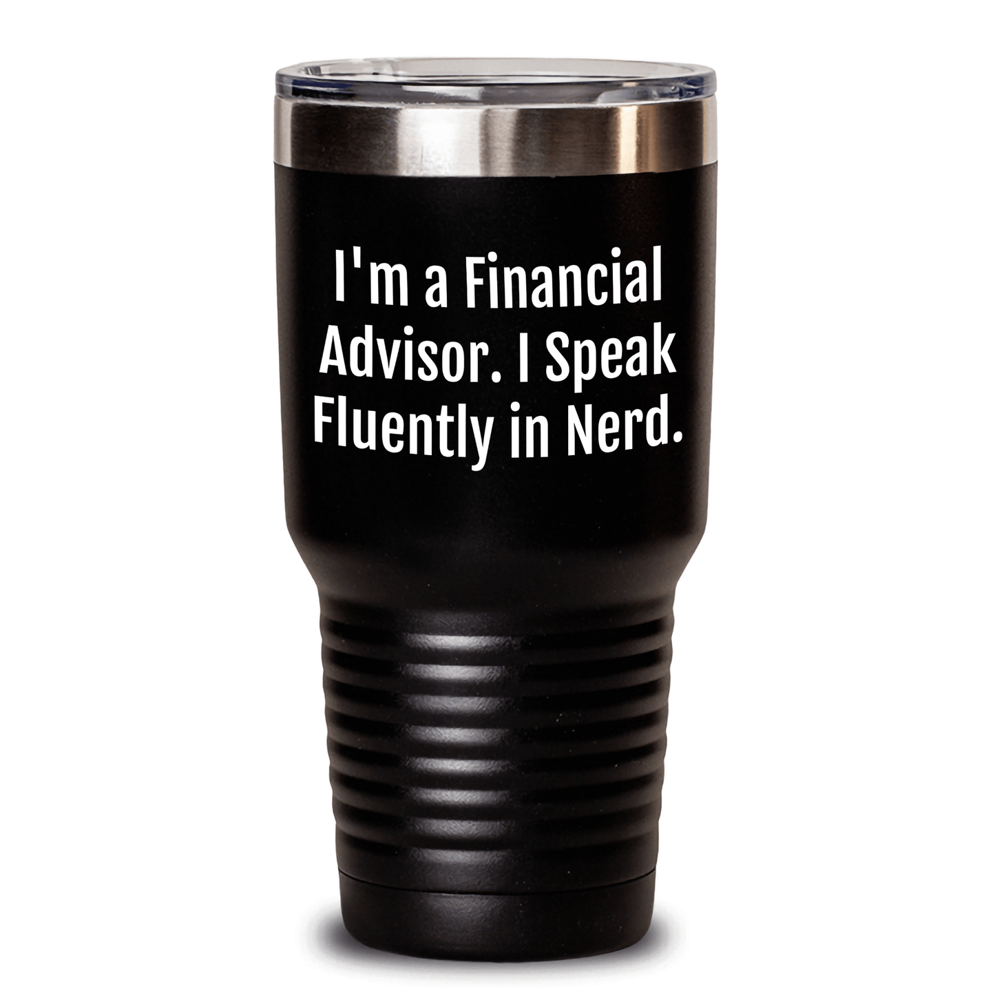 - ¿A qué esperas? Consigue hoy mismo tu vaso "Soy Asesor Financiero. Hablo con fluidez en ingenio" y demuéstrale a tu asesor financiero que te importa. ¡Un regalo de amigos o compañeros de trabajo que atesorarán durante años!