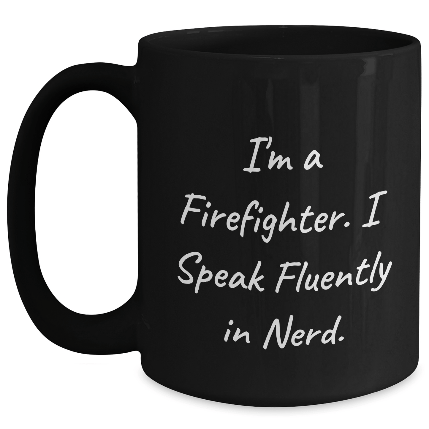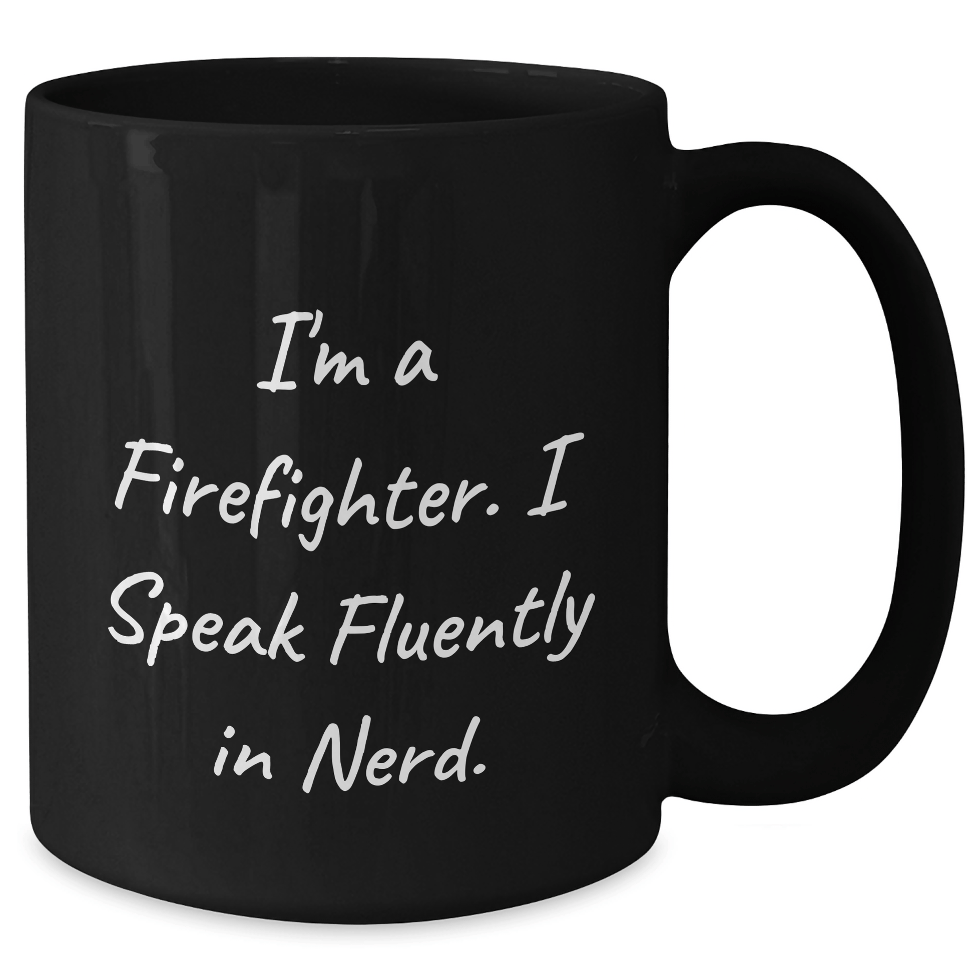 ¿Buscas un regalo original para el bombero de tu vida? ¡No busques más! Esta divertida taza de café negro es perfecta para la graduación de un bombero o para cualquier ocasión. La frase "Soy bombero. Hablo con fluidez y genialidad" es divertida e inspiradora, ideal para iniciar una conversación. La taza está hecha de cerámica de alta calidad y es apta para microondas y lavavajillas.