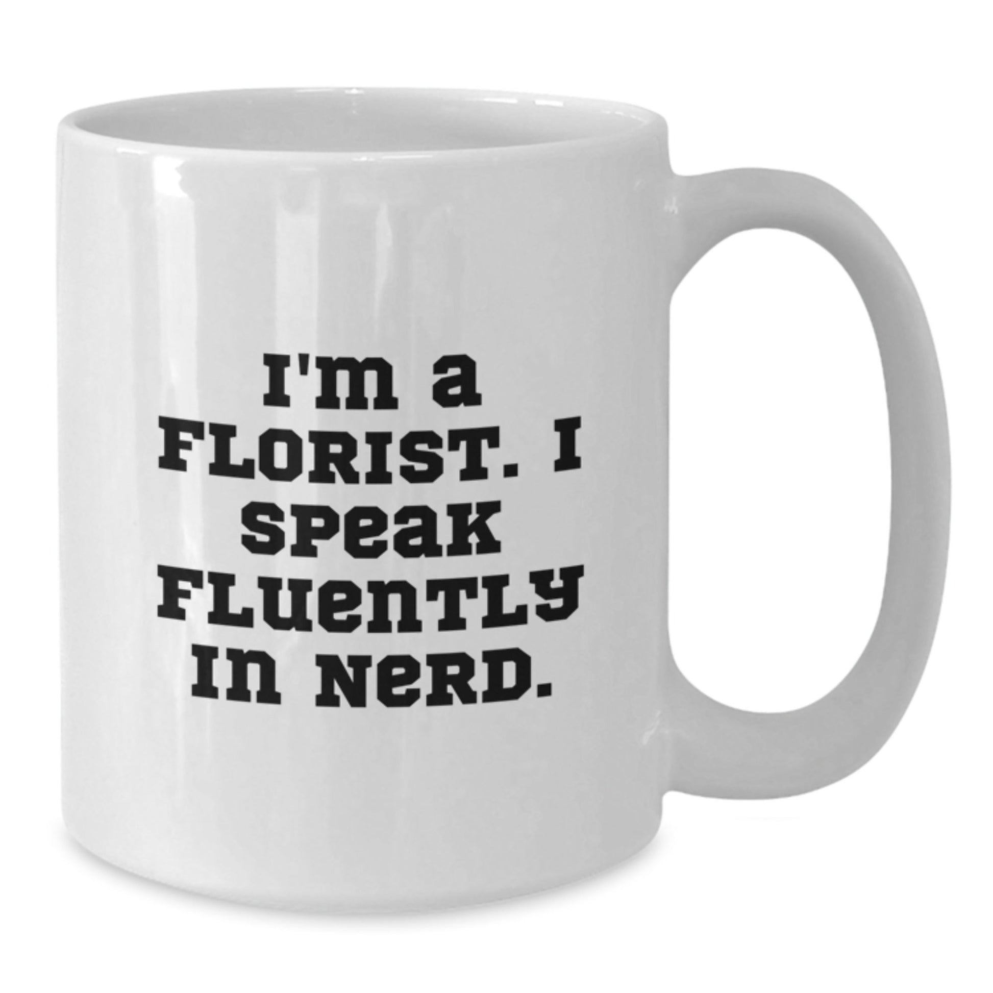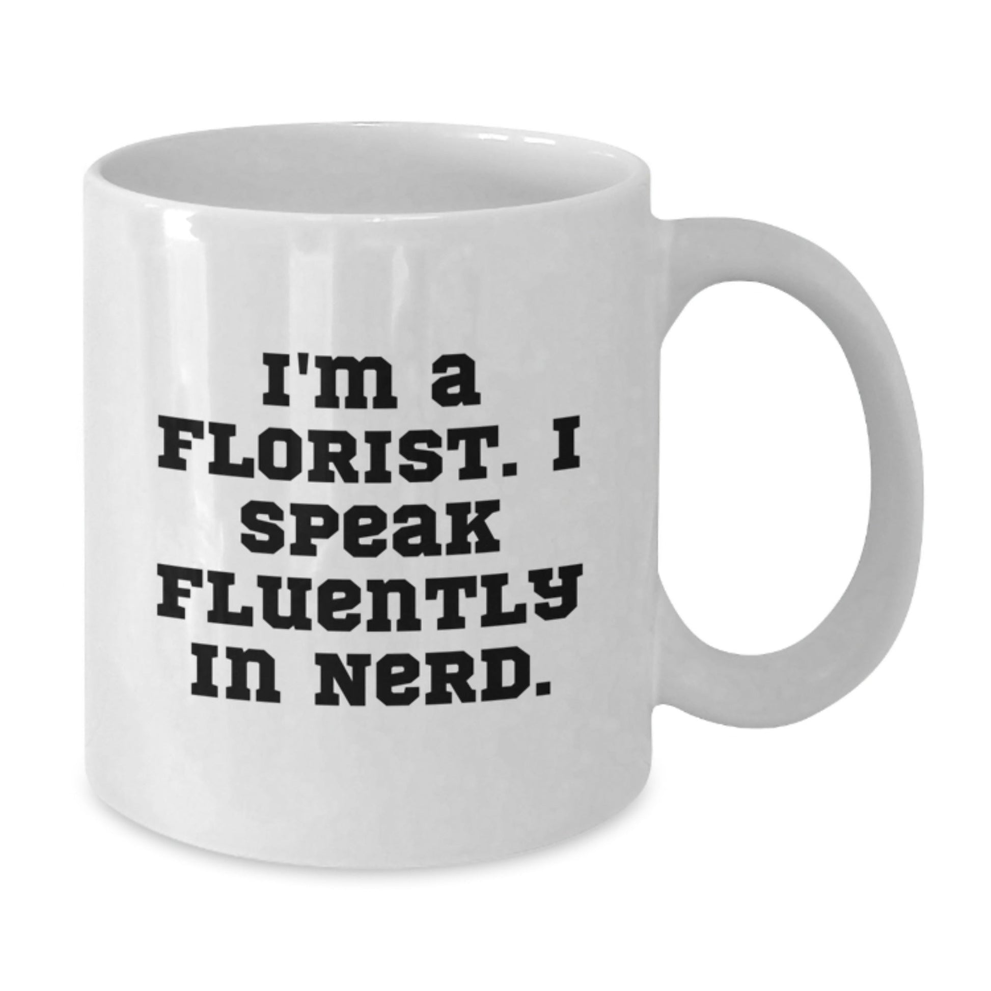 ¿Eres florista o amigo de un florista? ¿Quieres regalar algo único y divertido? ¡Esta taza de café blanca con la frase "Soy florista. Hablo con fluidez en ingenio" es la elección perfecta! Hecha de cerámica, es apta para microondas y lavavajillas, lo que facilita su limpieza y uso. Perfecta para el café o el té de cada día, es un regalo muy especial para cualquier florista o aficionado a las flores.