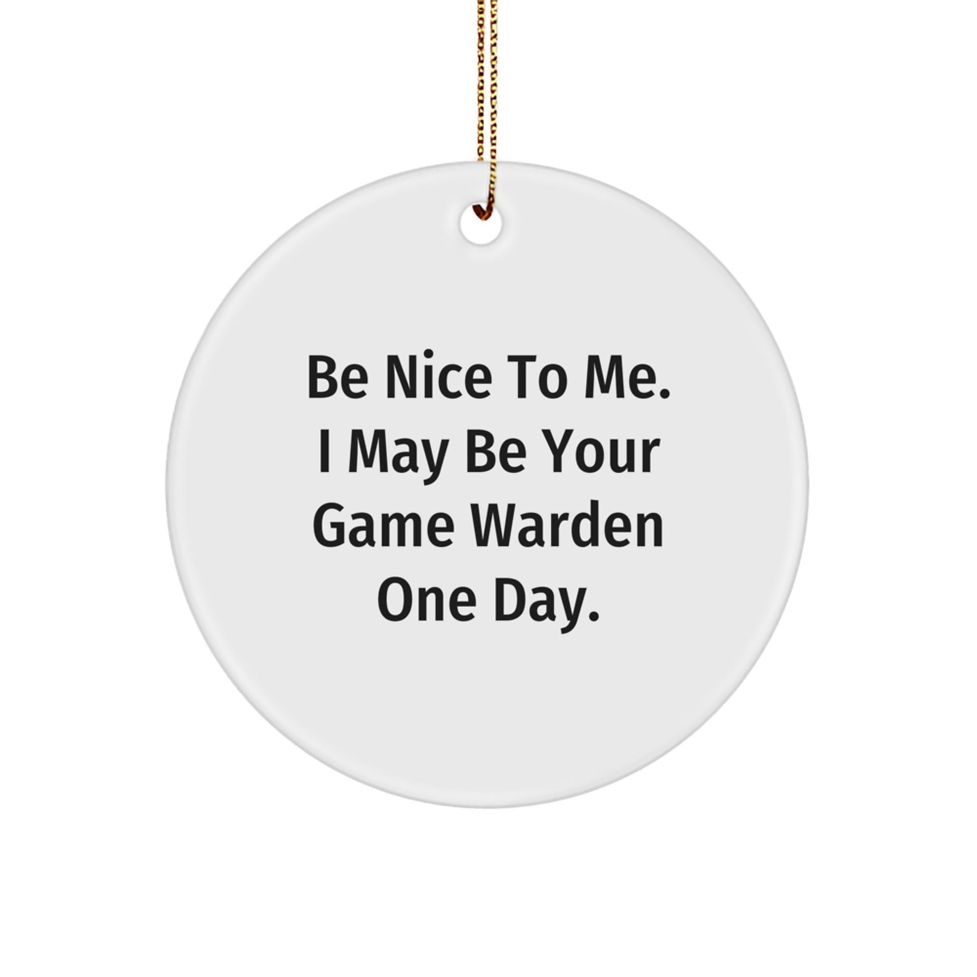 ¿Eres un entusiasta de los guardabosques o buscas un regalo único para un ser querido que también lo es? ¡No busques más! Este adorno circular es una excelente manera de mostrar tu agradecimiento por su arduo trabajo y dedicación. La frase "Sé amable conmigo. Quizás algún día seré tu guardabosques" es una forma divertida y alegre de reconocer su autoridad. Este adorno es perfecto para decorar tu hogar u oficina durante las fiestas. Es un regalo considerado para guardabosques de todas las edades. Ya seas un familiar, un amigo, un compañero de trabajo o simplemente alguien que ama la naturaleza, este adorno es una excelente manera de mostrar tu apoyo. Así que, ¿por qué no regalarle a tu ser querido un regalo que sea funcional y divertido? Pide este adorno circular hoy mismo y alegra un poco sus fiestas.