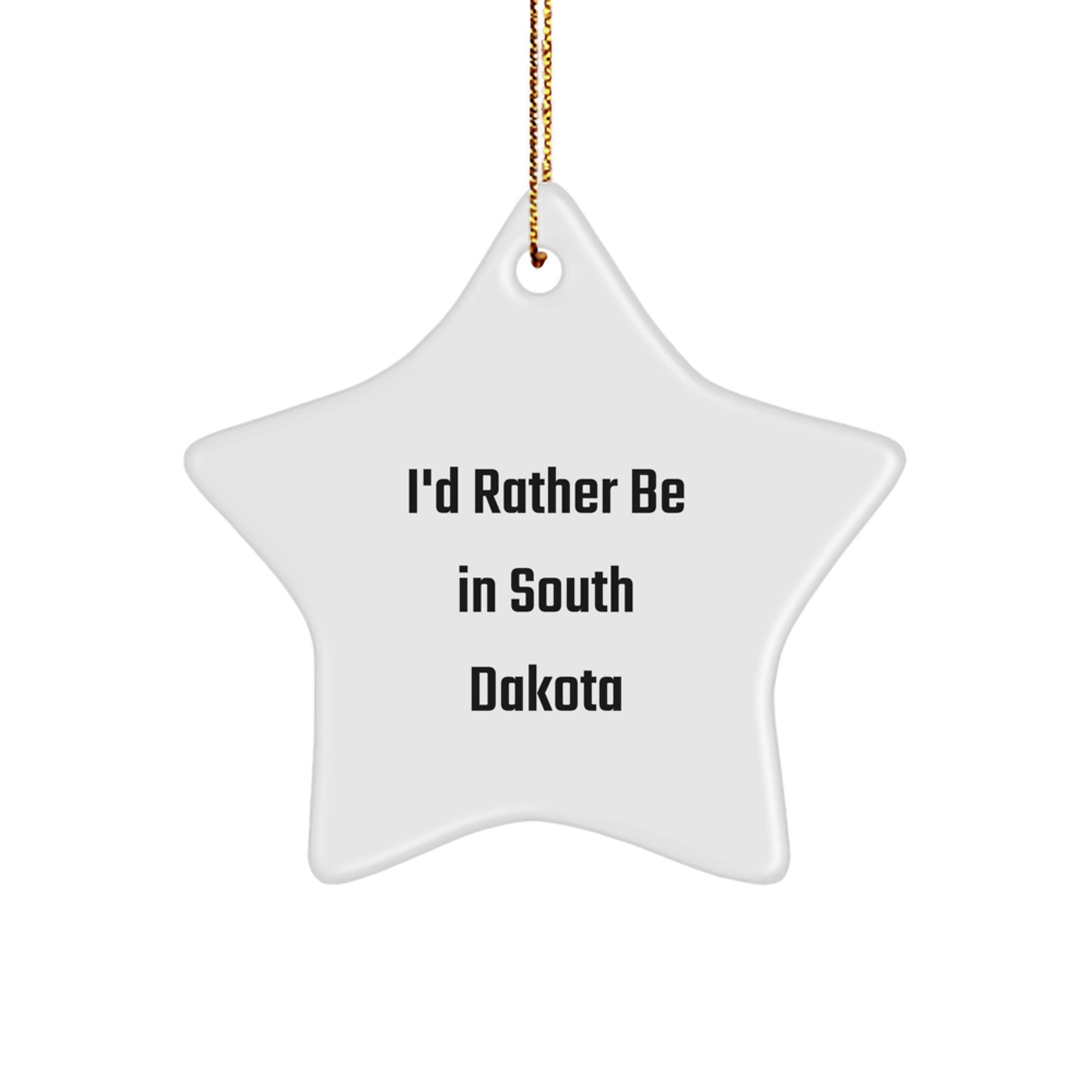 Prepárate para compartir alegría navideña con este original adorno de estrella con temática de Dakota del Sur. "Preferiría estar en Dakota del Sur" es la frase perfecta para cualquier entusiasta del estado del Monte Rushmore. Este adorno en forma de estrella está fabricado con MDF resistente y un acabado plástico de alto brillo, lo que garantiza su durabilidad. Los vibrantes colores se imprimen de borde a borde mediante sublimación, lo que lo convierte en una excelente opción para hogares con niños o mascotas. Incluye un cordón dorado festivo para colgarlo fácilmente, perfecto para decorar sin estrés. Ya sea para un amigo, familiar o compañero de trabajo, este regalo seguro le sacará una sonrisa. ¿Por qué no regalar Dakota del Sur esta Navidad?