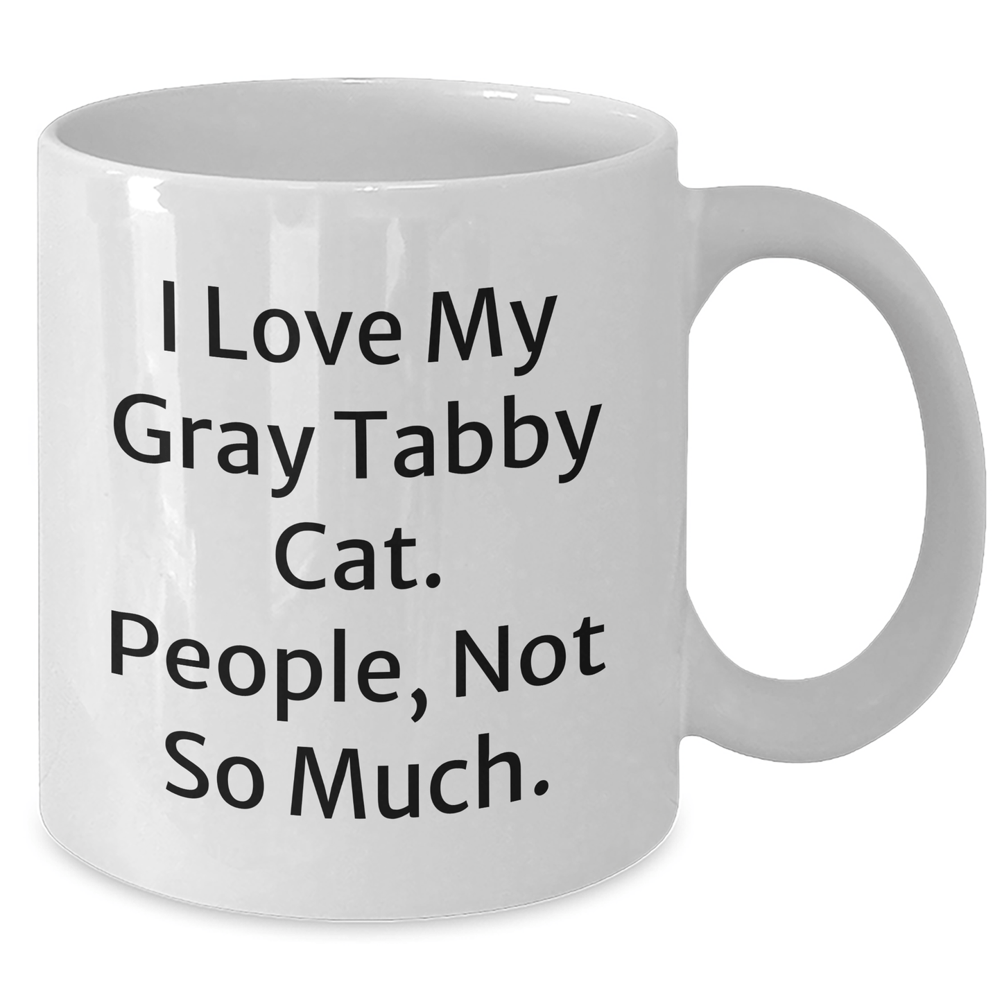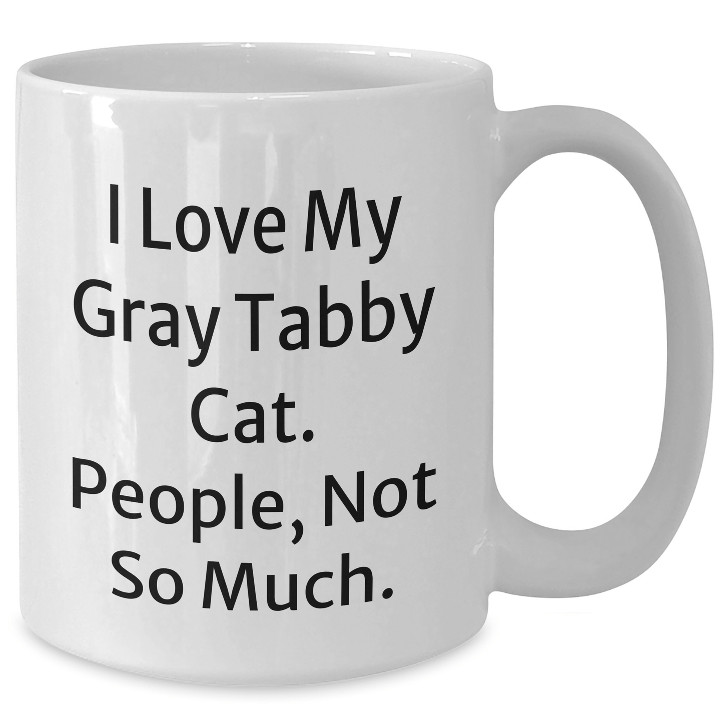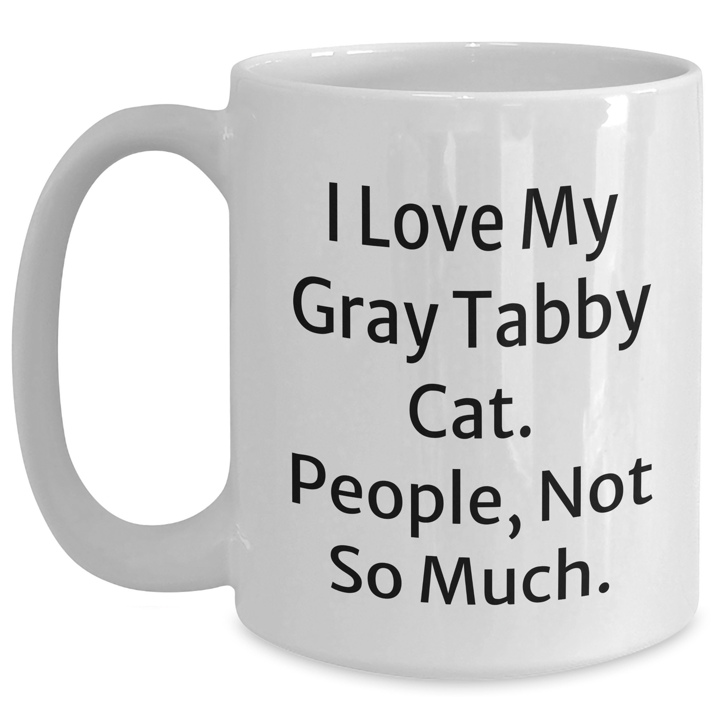 - Demuestre su amor por "Amo a mi gato atigrado gris. La gente, no tanto" con esta exclusiva taza de café blanca con gato atigrado gris, perfecta para enviar a amigos y familiares en ocasiones especiales como graduaciones y disfrutar de sus bebidas calientes favoritas con una sonrisa.