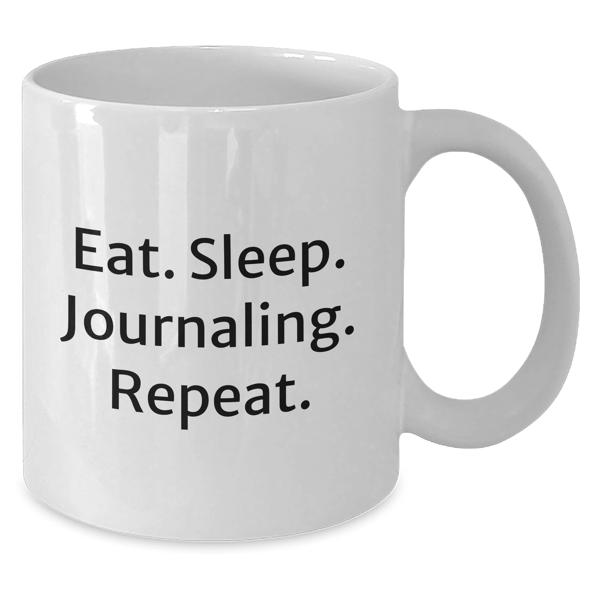 ¿A qué esperas? Consigue hoy mismo tu taza de café blanca "Come. Duerme. Escribe en tu diario. Repite." e incorpórala a tu rutina diaria o regálasela a alguien especial.
