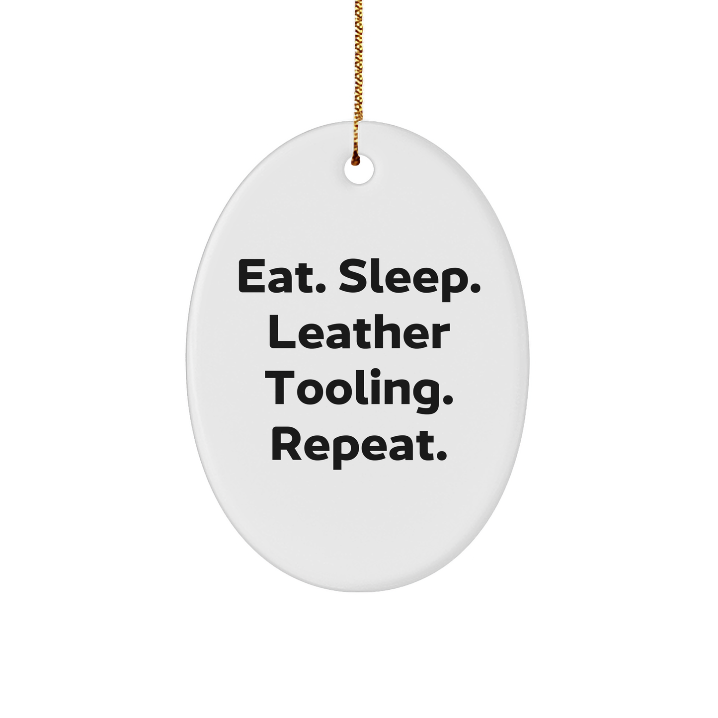 ¿Cansado de regalar lo mismo a tus seres queridos que comparten tu pasión por el trabajo en cuero? ¡No busques más! Este adorno ovalado "Come. Duerme. Trabajo en cuero. Repite". Es la manera perfecta de demostrar tu aprecio por su dedicación a la artesanía. Hecho de MDF resistente con un acabado plástico de alto brillo, este adorno está impreso de borde a borde mediante sublimación, lo que garantiza colores brillantes y vívidos que llamarán la atención.