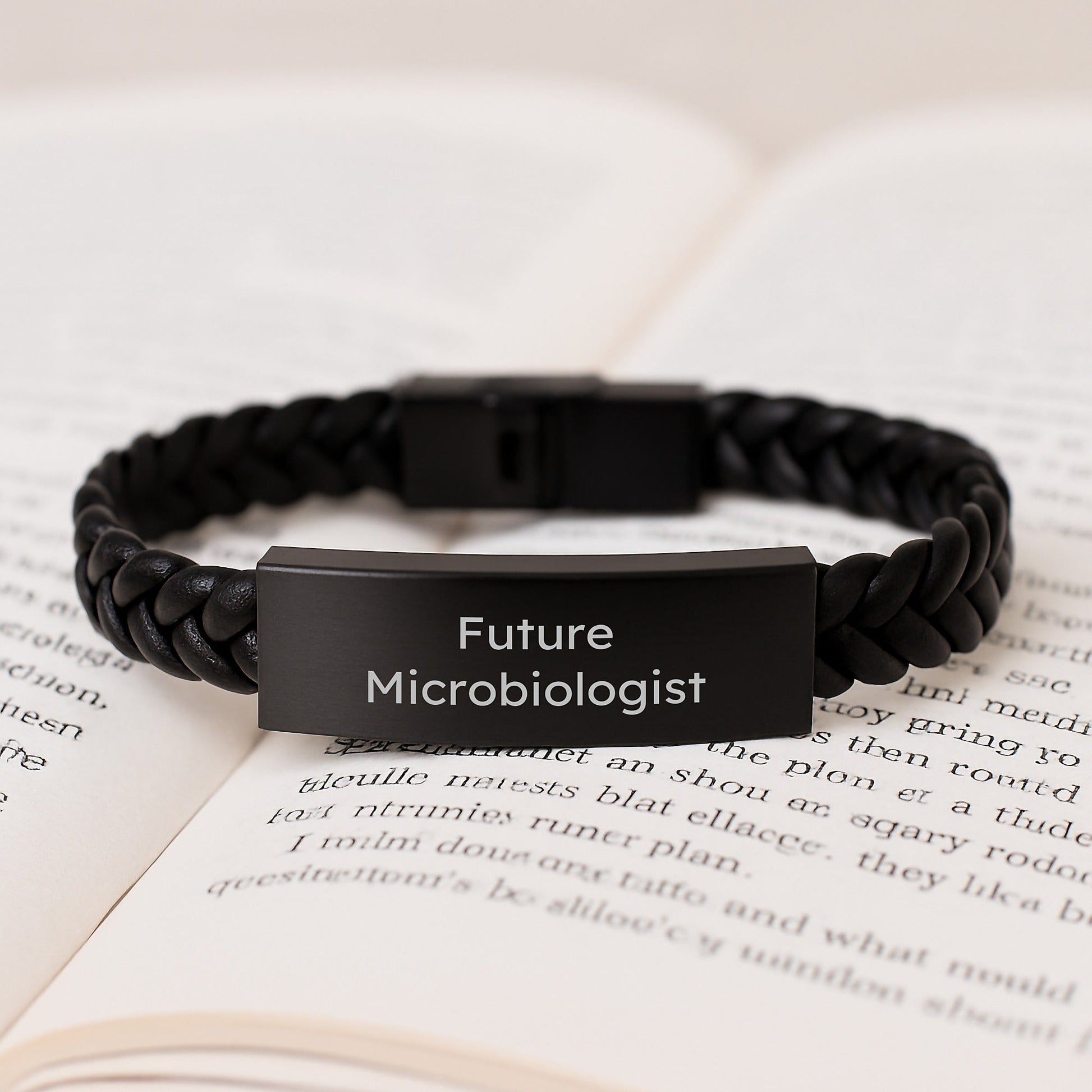 Si eres un entusiasta de la microbiología o buscas un regalo único para un futuro microbiólogo, ¡has llegado al lugar indicado! Esta pulsera de cuero entrelazado es un regalo ideal para un graduado o para cualquiera que busque una carrera en microbiología. Fabricada con acero inoxidable grabado para mayor durabilidad, este versátil accesorio combina lo mejor de ambos mundos: la elegancia del cuero sintético y la resistencia del acero inoxidable. La frase "Futuro Microbiólogo" nos recuerda el camino recorrido y el camino que nos espera.