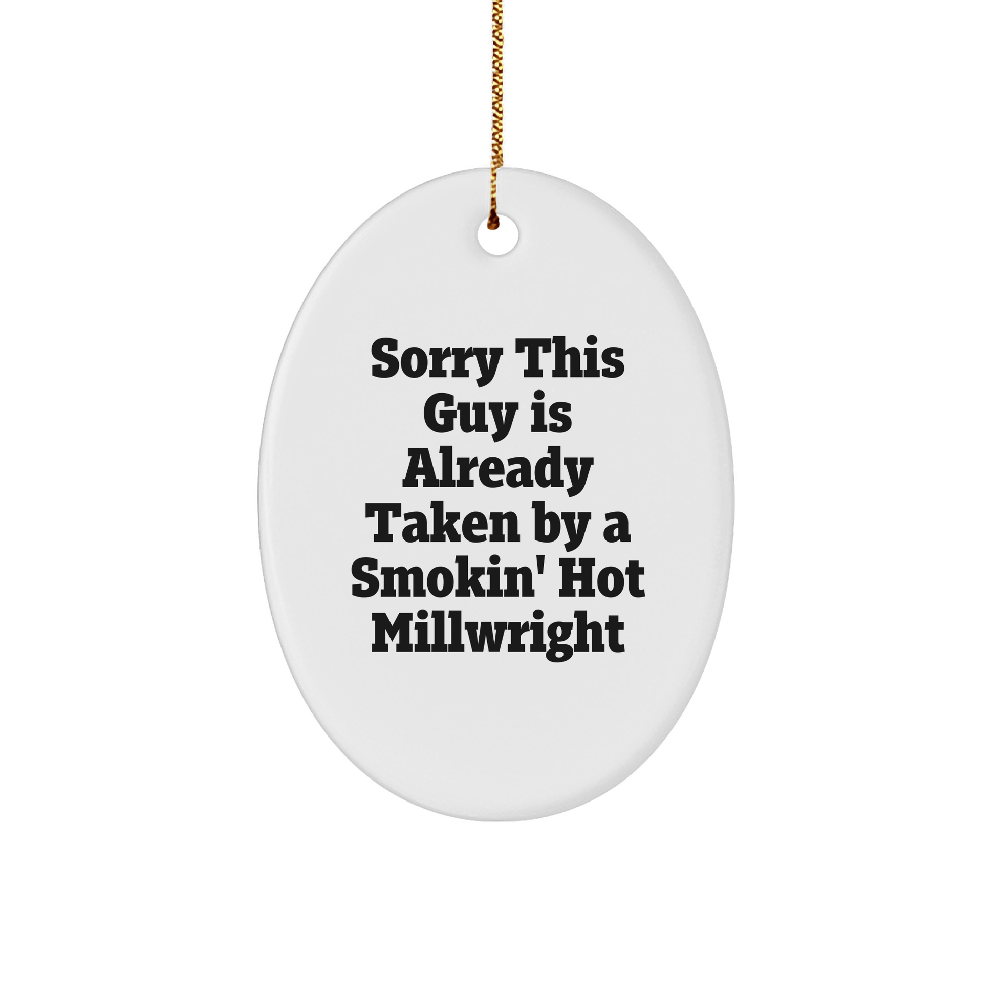 Así que no esperes: ¡consigue hoy tu adorno ovalado Sorry This Guy Is Already Taken By A Smokin' Hot Millwright y deja una impresión duradera en tu Millwright favorito!