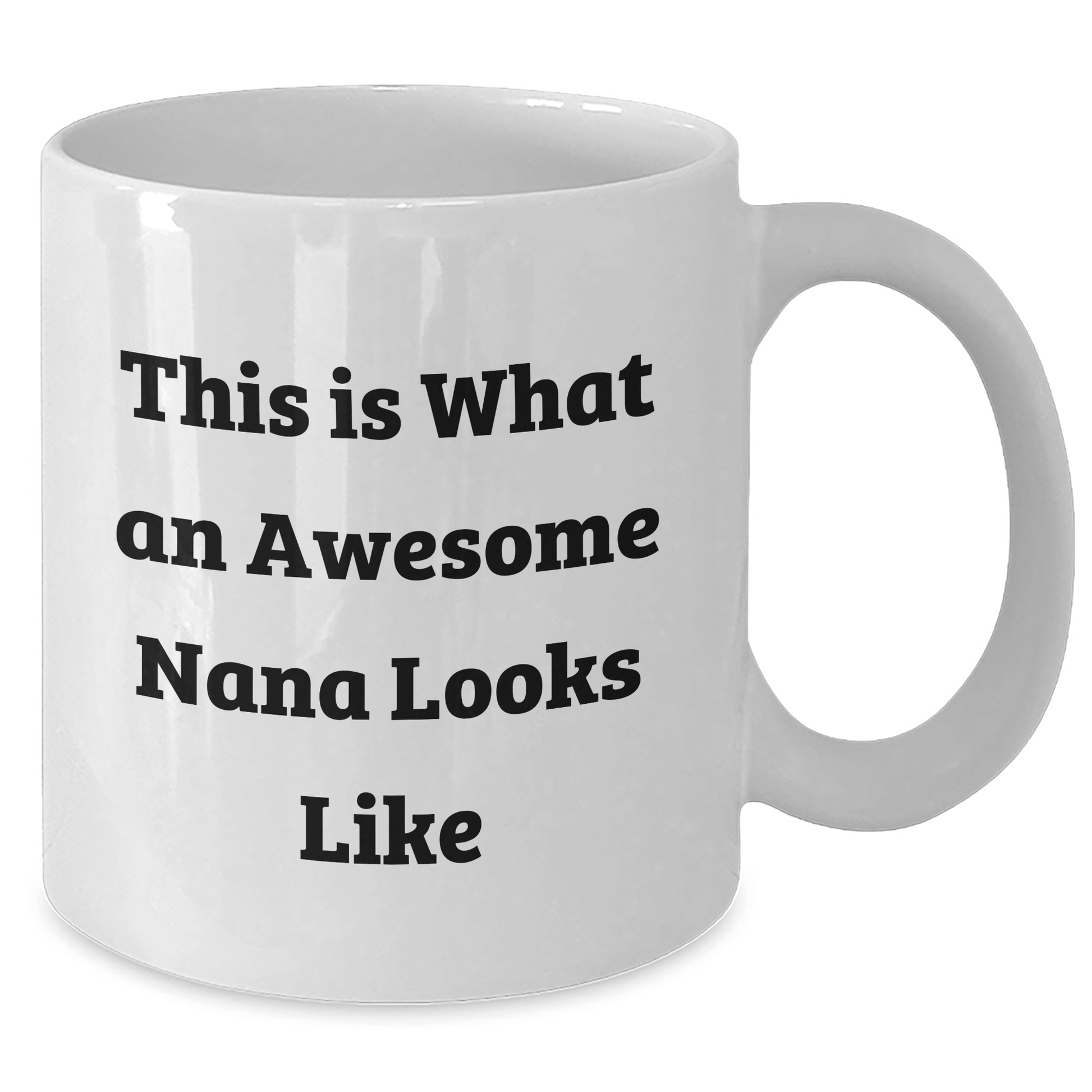 - Alegra el día de tu Nana con esta divertida y única taza de café blanca, que incluye la frase "Así es como luce una Nana increíble".