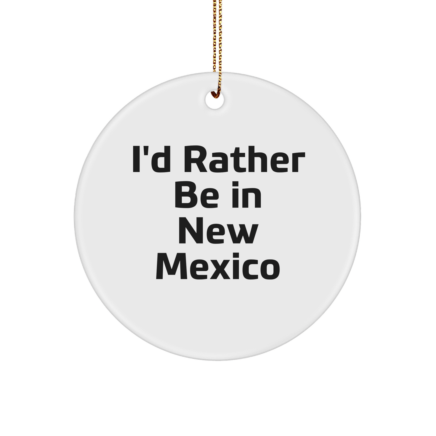 - Este adorno circular "Preferiría estar en Nuevo México" es un regalo considerado y único para cualquier entusiasta de Nuevo México, lo que lo convierte en un regalo ideal para cumpleaños, días festivos o simplemente un acto de bondad al azar.