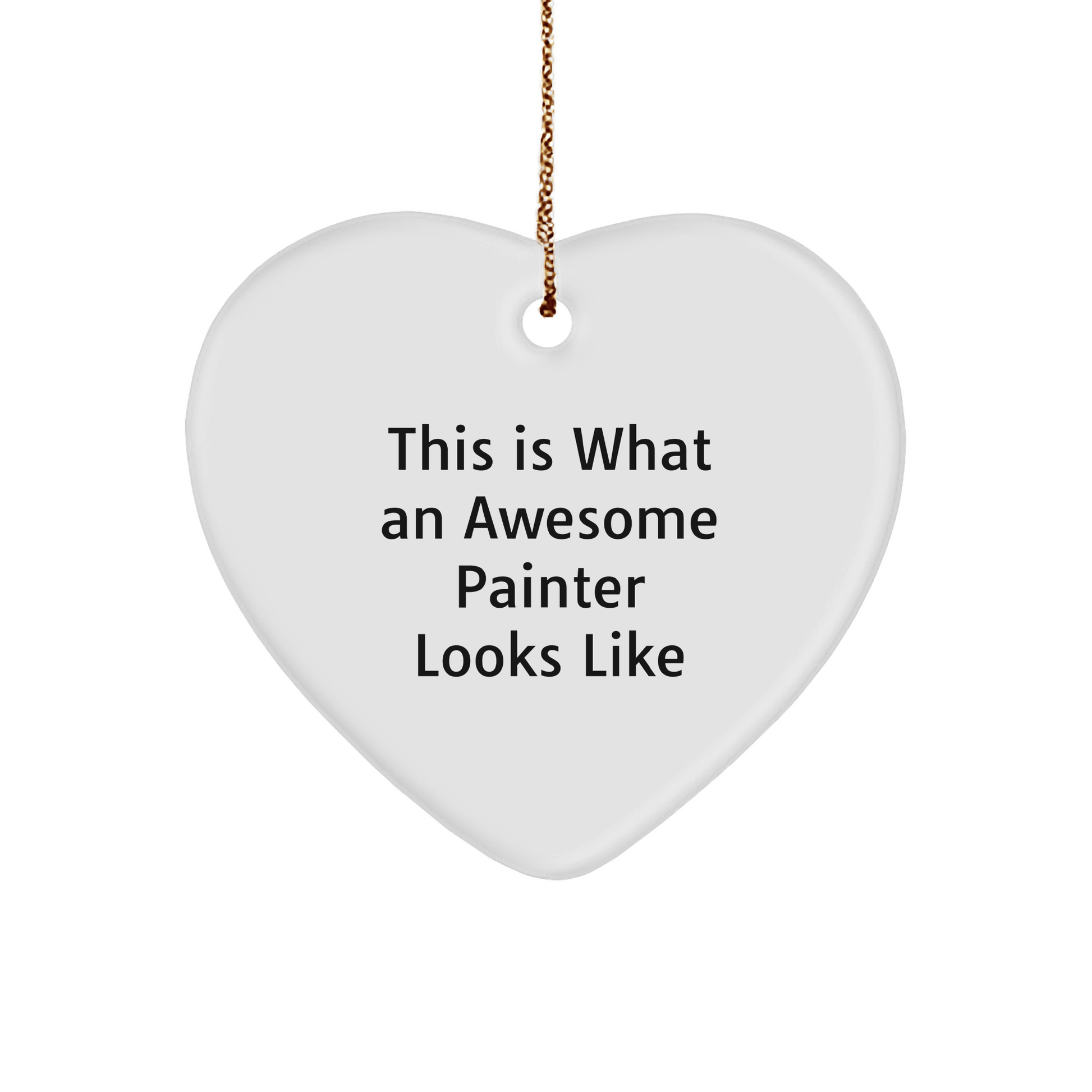 ¿Eres pintor o conoces a alguien a quien le encanta pintar? ¡Este es el regalo ideal! Nuestro adorno en forma de corazón es una forma divertida y original de celebrar su pasión por la pintura. La frase "Así es como luce un pintor increíble" es un gran recordatorio de la alegría y la creatividad que conlleva pintar. Conviértelo en un regalo especial de Navidad para amigos, familiares o compañeros de trabajo. Este adorno en forma de corazón está hecho de MDF resistente con un acabado plástico de alto brillo y está impreso de borde a borde mediante sublimación. Es ligero, resistente a las roturas y se envía con un cordón dorado festivo para colgarlo fácilmente. Una excelente opción para hogares con niños o mascotas.