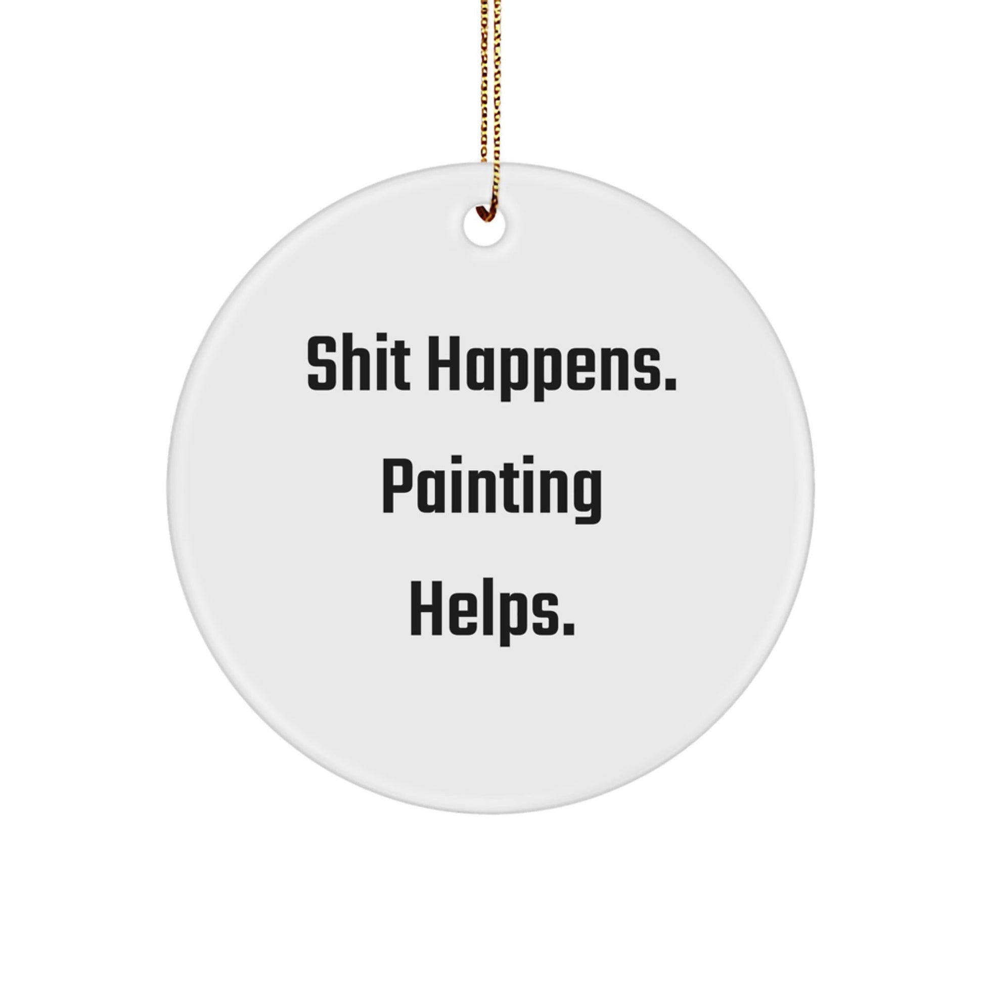 - Dale un toque de creatividad a tu árbol de Navidad con este original adorno circular de pintura. Su frase, "Las cosas pasan. Pintar ayuda", es un divertido recordatorio de que, incluso en tiempos caóticos, pintar puede traer alegría y relajación. Sus vibrantes colores y diseño lo convierten en un excelente tema de conversación, y su construcción ligera lo hace seguro para hogares con niños o mascotas.