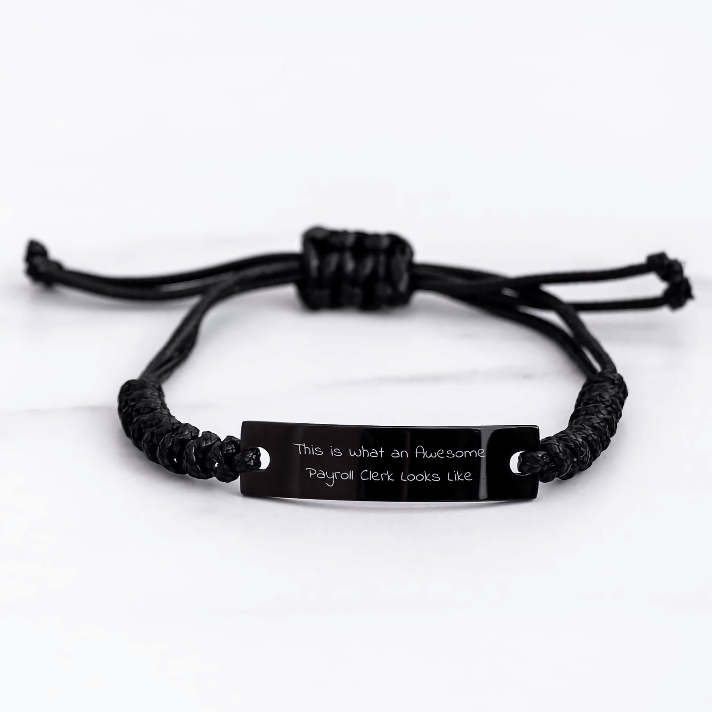 - Como profesional que dice "Así es como luce un excelente empleado de nóminas", celebre su logro con esta elegante pulsera de cuerda, perfecta para agregar un toque de sofisticación a su atuendo formal.