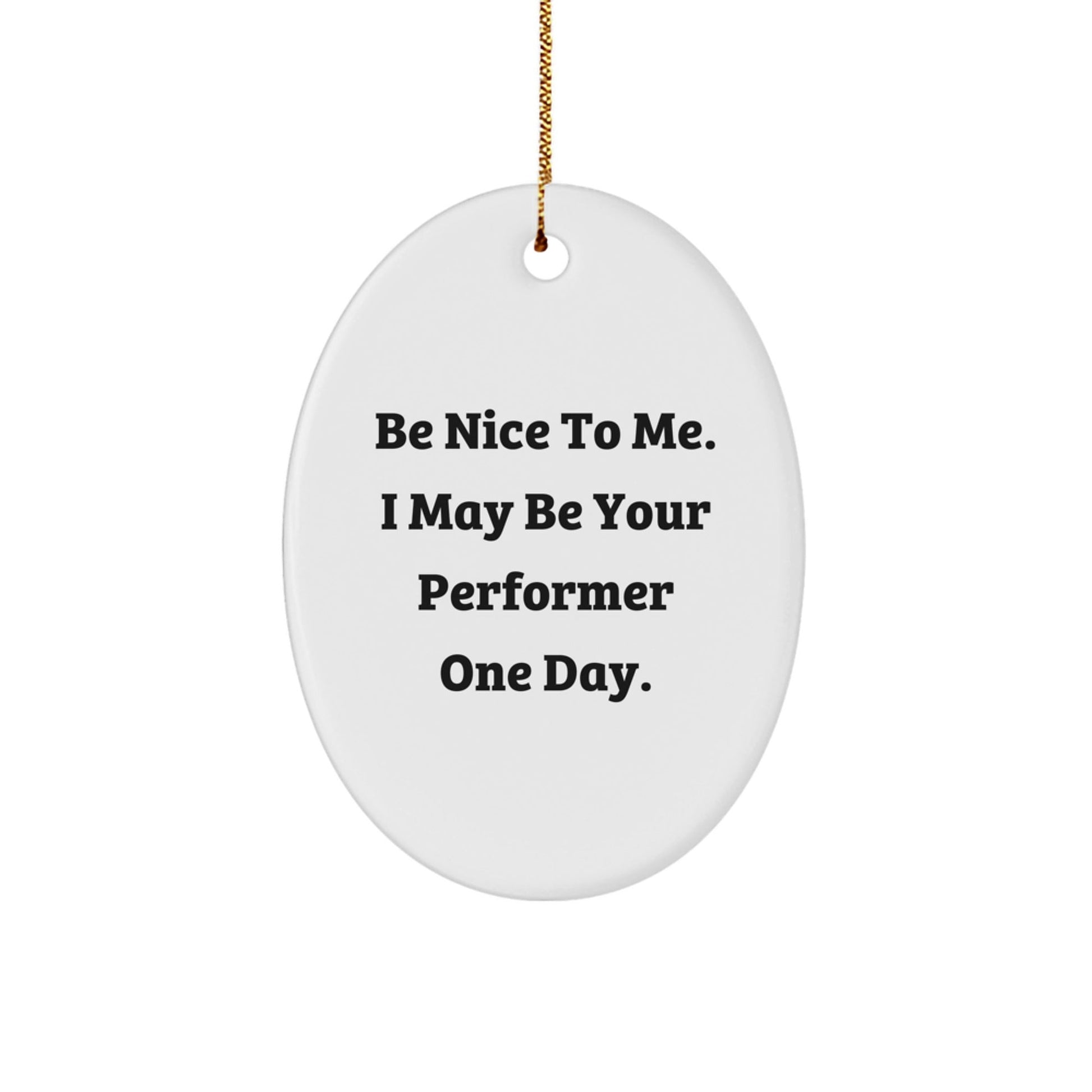 ¿Eres fan de los artistas o conoces a alguien que lo sea? ¡Este original adorno ovalado es el regalo ideal para ese artista en tu vida! "Sé amable conmigo. Quizás algún día sea tu artista" es una frase divertida y cercana que le sacará una sonrisa. Hecho de MDF resistente y plástico brillante, este adorno es ligero y resistente a las roturas, lo que lo convierte en una excelente opción para hogares con niños o mascotas. Sus vibrantes colores y su festivo cordón dorado añadirán un toque de elegancia a cualquier habitación. Tanto si eres artista como si simplemente aprecias su trabajo, este adorno es un regalo ideal para cualquier ocasión.