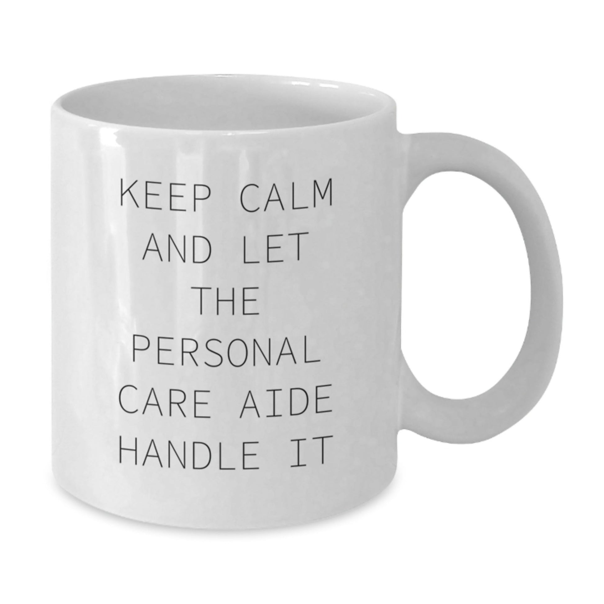 - Haga una declaración con esta divertida taza de café blanca que es perfecta para los asistentes de cuidado personal; la cita "Mantenga la calma y deje que el asistente de cuidado personal se encargue" seguramente les traerá una sonrisa a la cara.