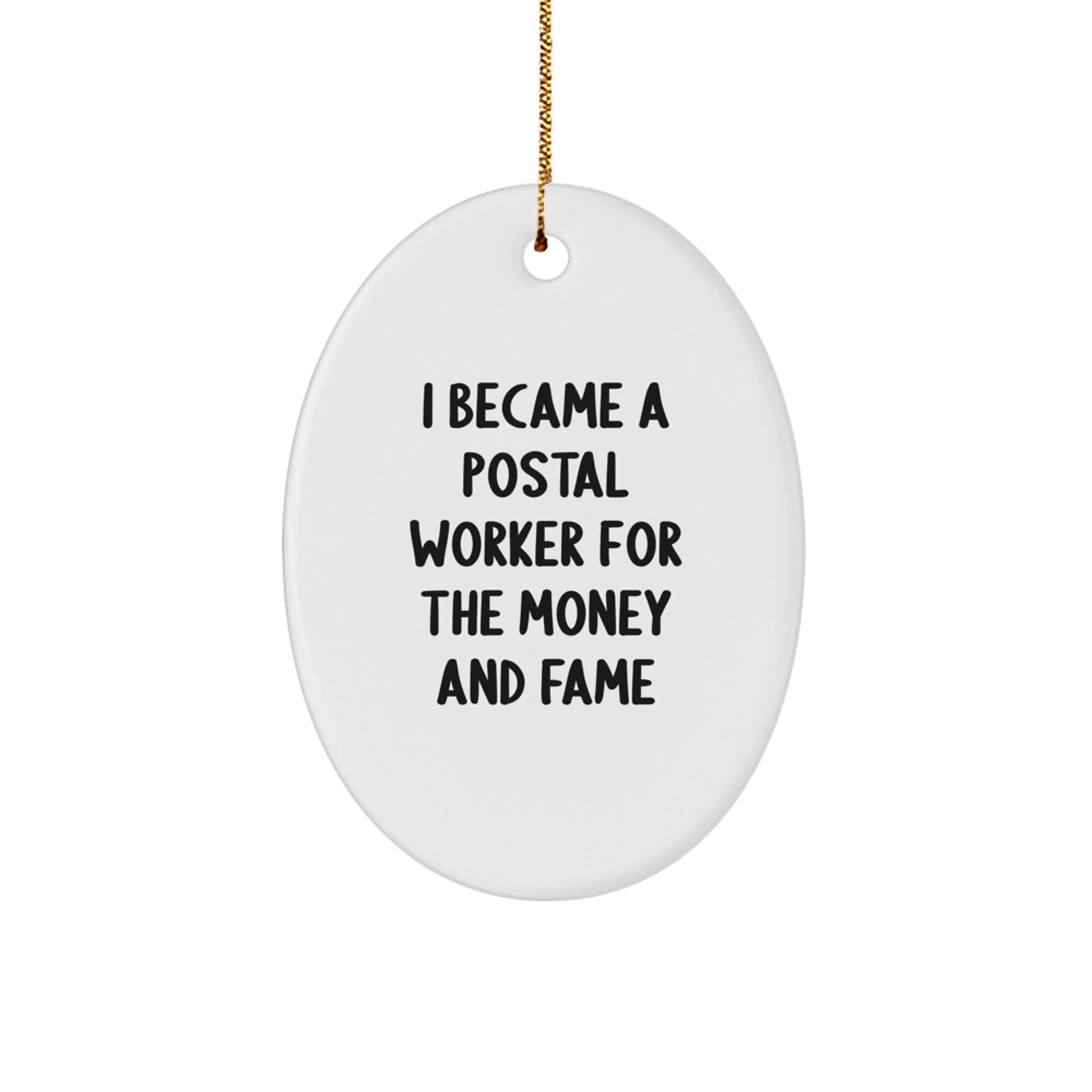 - Este divertido adorno ovalado es un regalo único y considerado para el trabajador postal de tu vida, con una cita memorable que seguramente le sacará una sonrisa.
