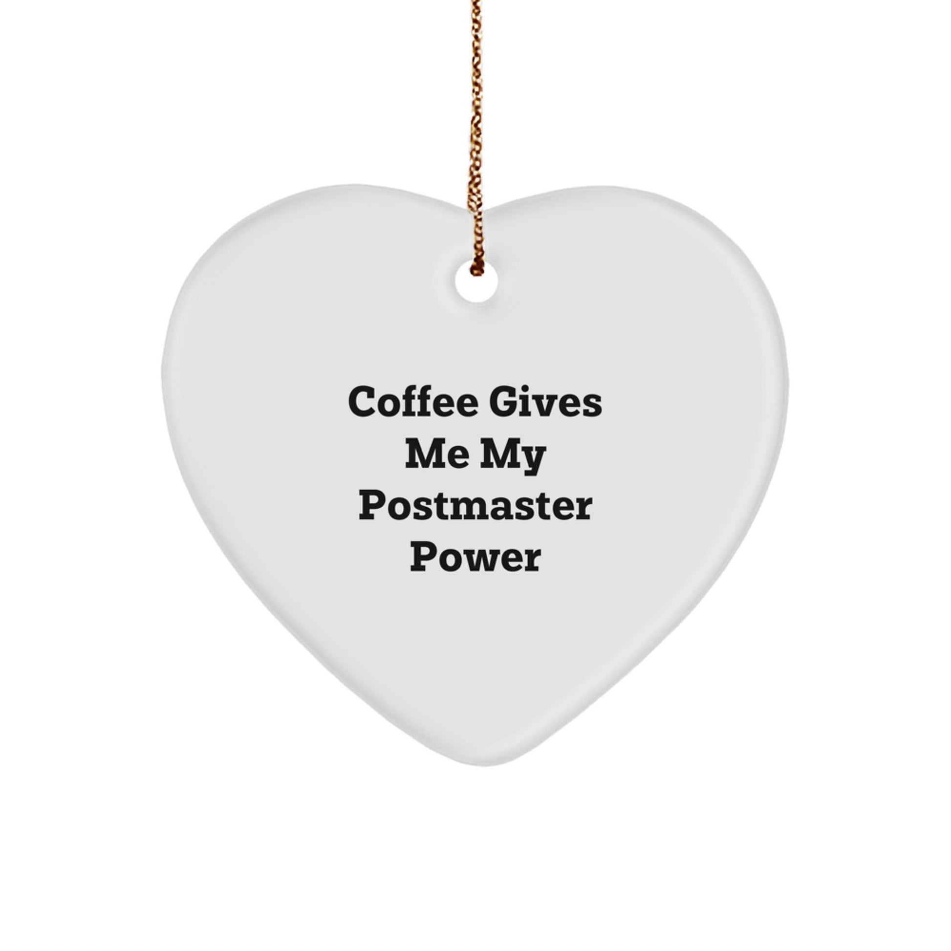 - Dale un toque de magia de Postmaster a tu decoración navideña con nuestro vibrante adorno de corazón, con la frase "El café me da mi poder de Postmaster" en colores vibrantes y brillantes. Perfecto para darle un toque personal a tu árbol de Navidad o repisa.