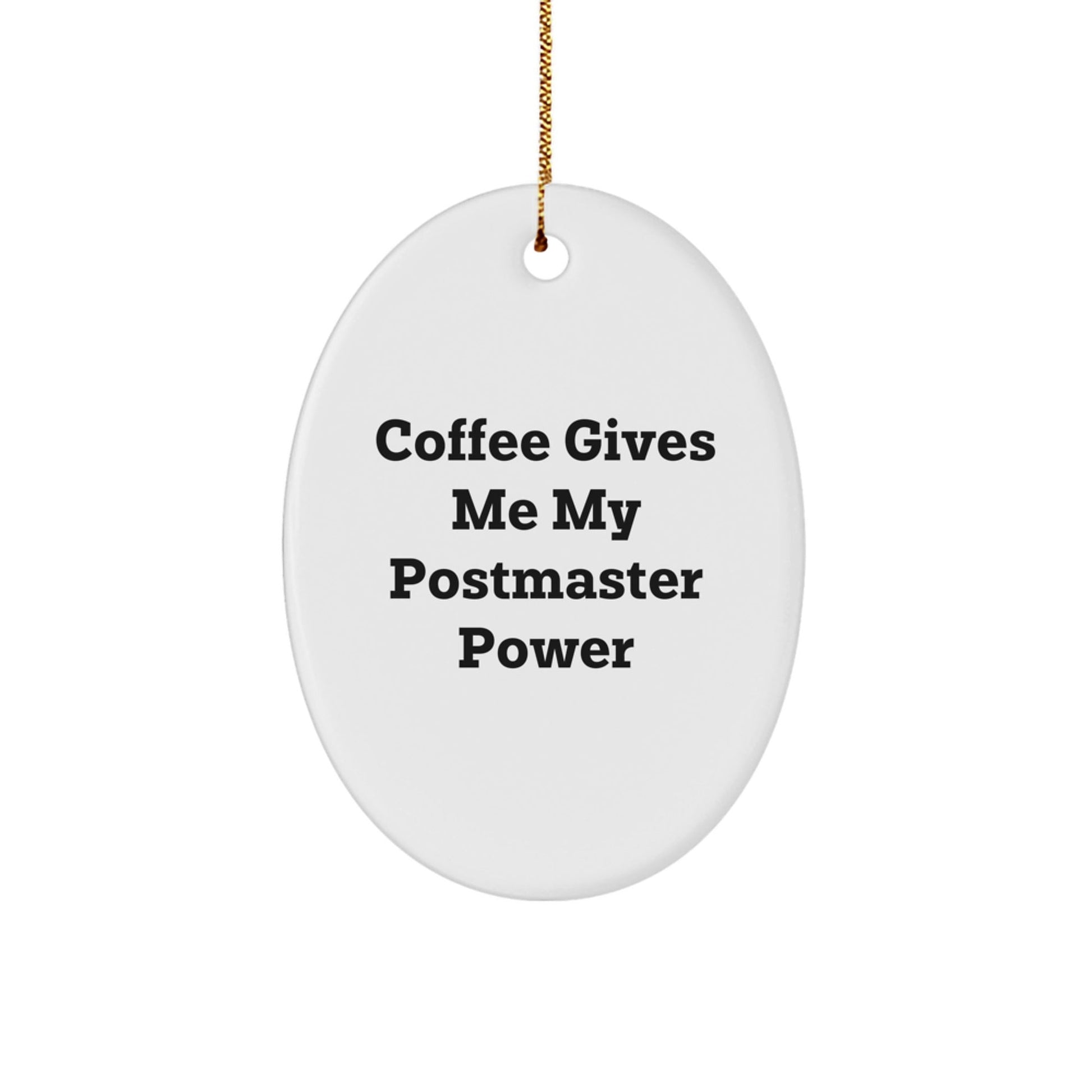 - 'Coffee Gives Me My Postmaster Power' está impreso de manera vibrante de borde a borde mediante sublimación, lo que hace que este adorno sea una sorprendente adición a cualquier árbol de Navidad o espacio de trabajo del cartero.