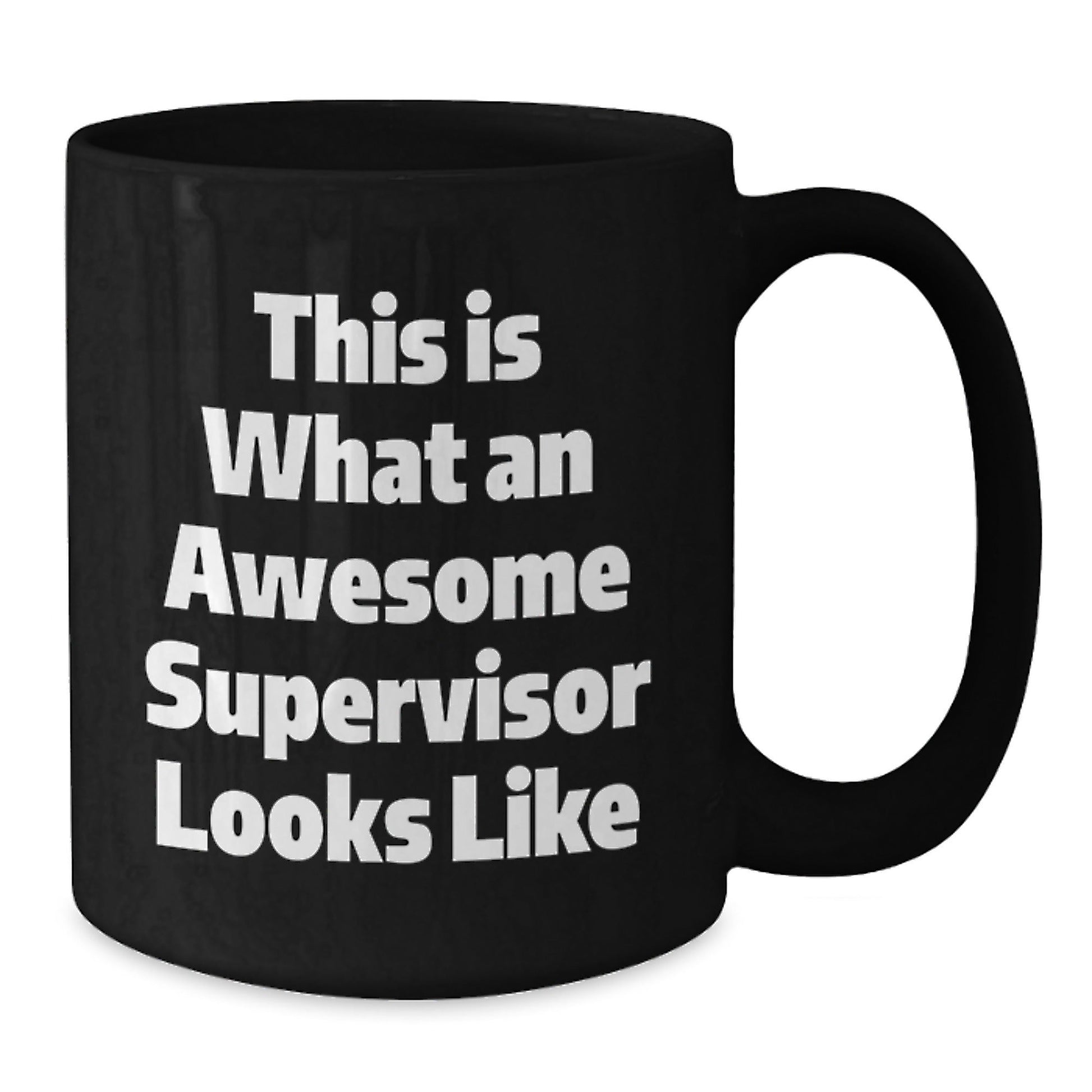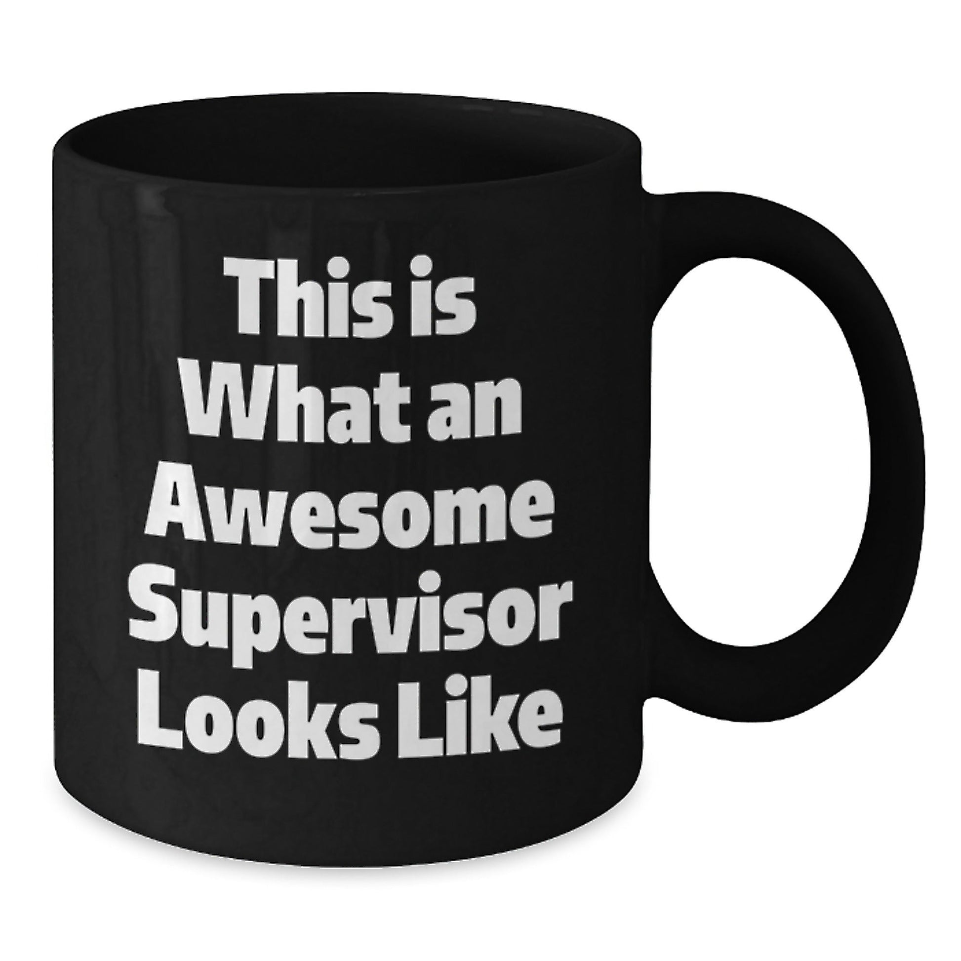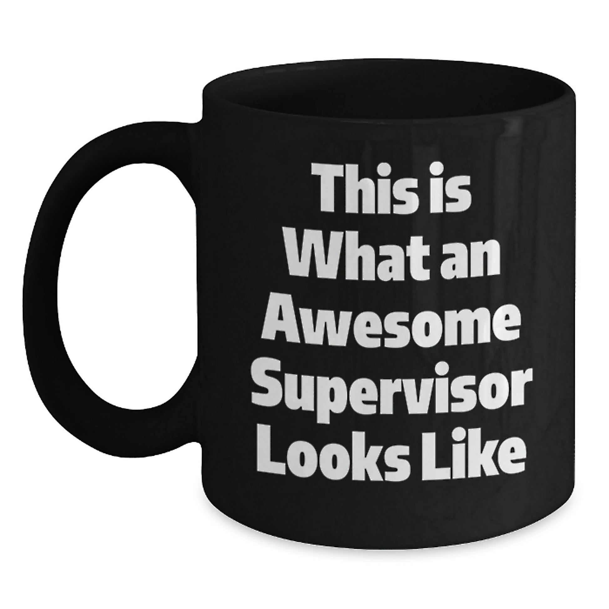 - Haga un regalo considerado y divertido para su supervisor con esta taza de café negra que tiene la frase "Así es como luce un supervisor increíble".