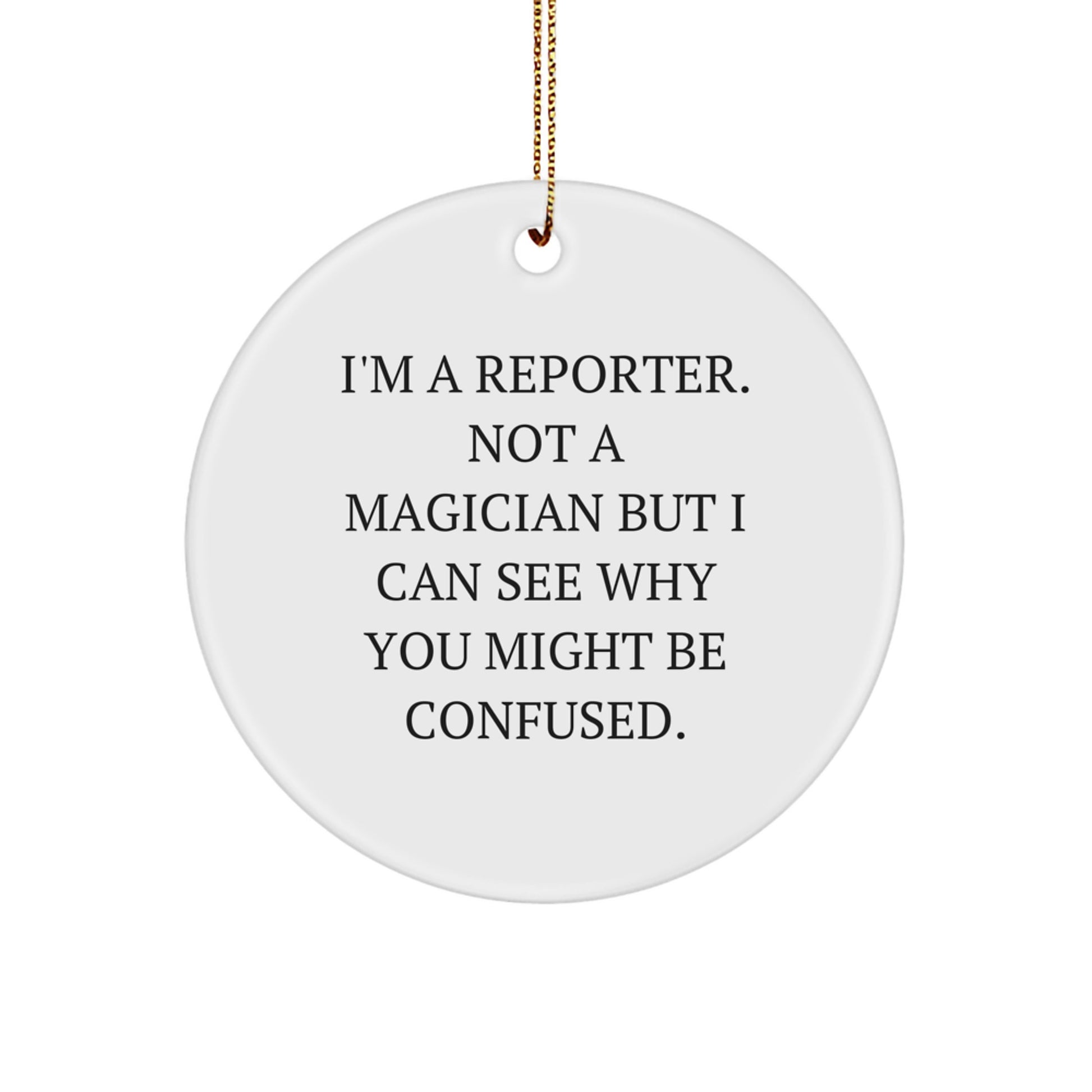 - Regala risas y alegría al reportero de tu vida con este divertido y único adorno circular. Perfecto para cualquier reportero que ame contar historias y capturar el momento, este adorno de hermosa elaboración incluye una cita divertida que lo hará sonreír.