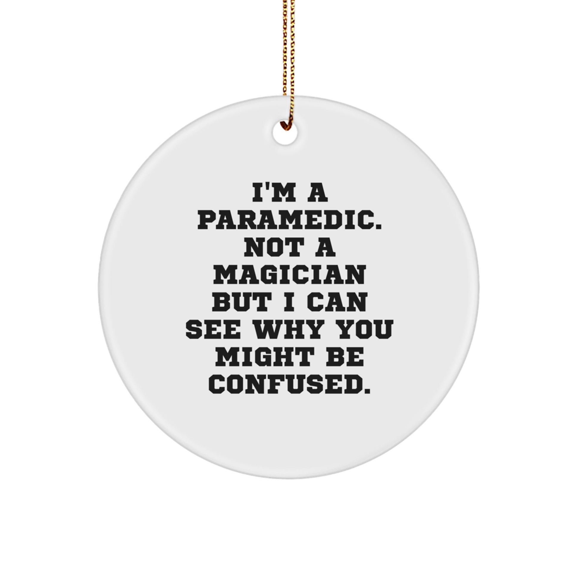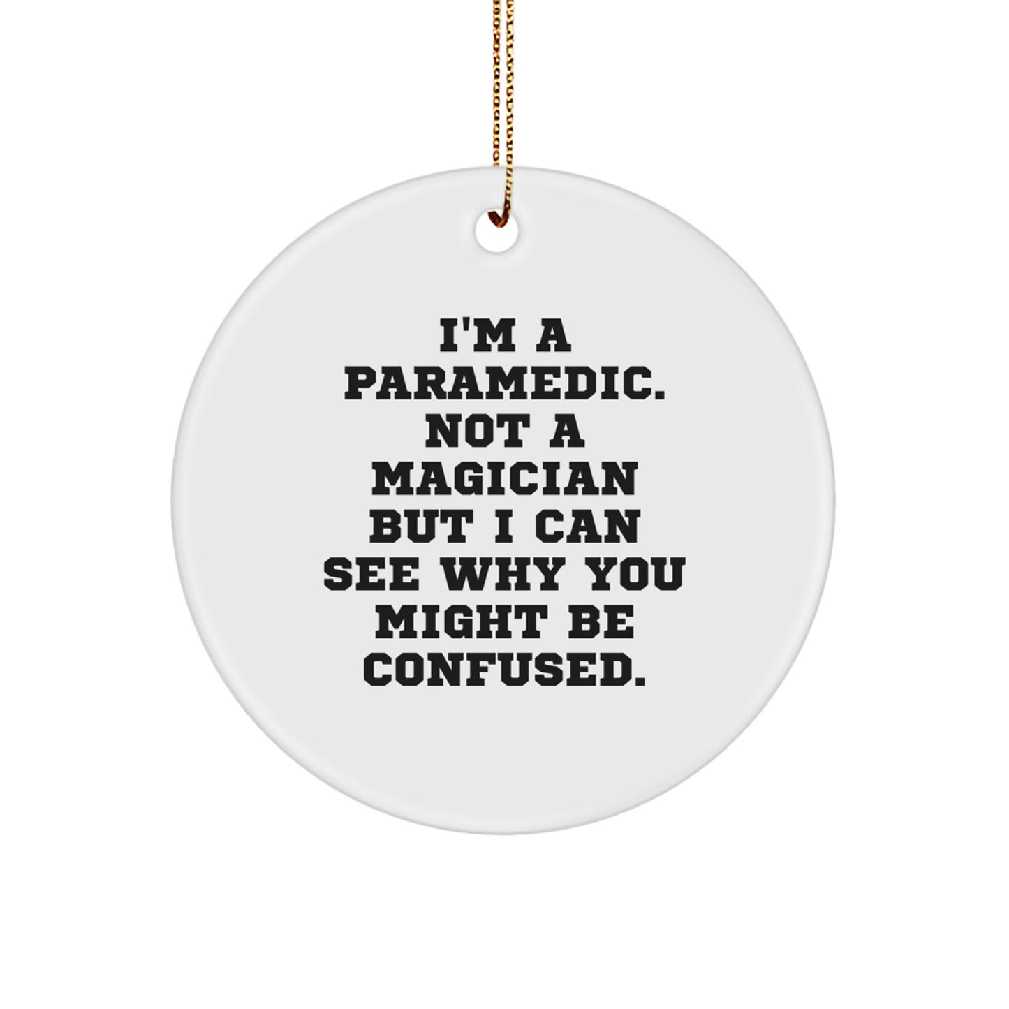 ¿Por qué conformarte con un regalo aburrido y genérico cuando puedes regalar algo verdaderamente único y especial? Pide hoy mismo este adorno circular "Soy rescatista. No soy mago, pero entiendo por qué podrías estar confundido" y demuéstrales a tus amigos o familiares rescatistas cuánto te importan.