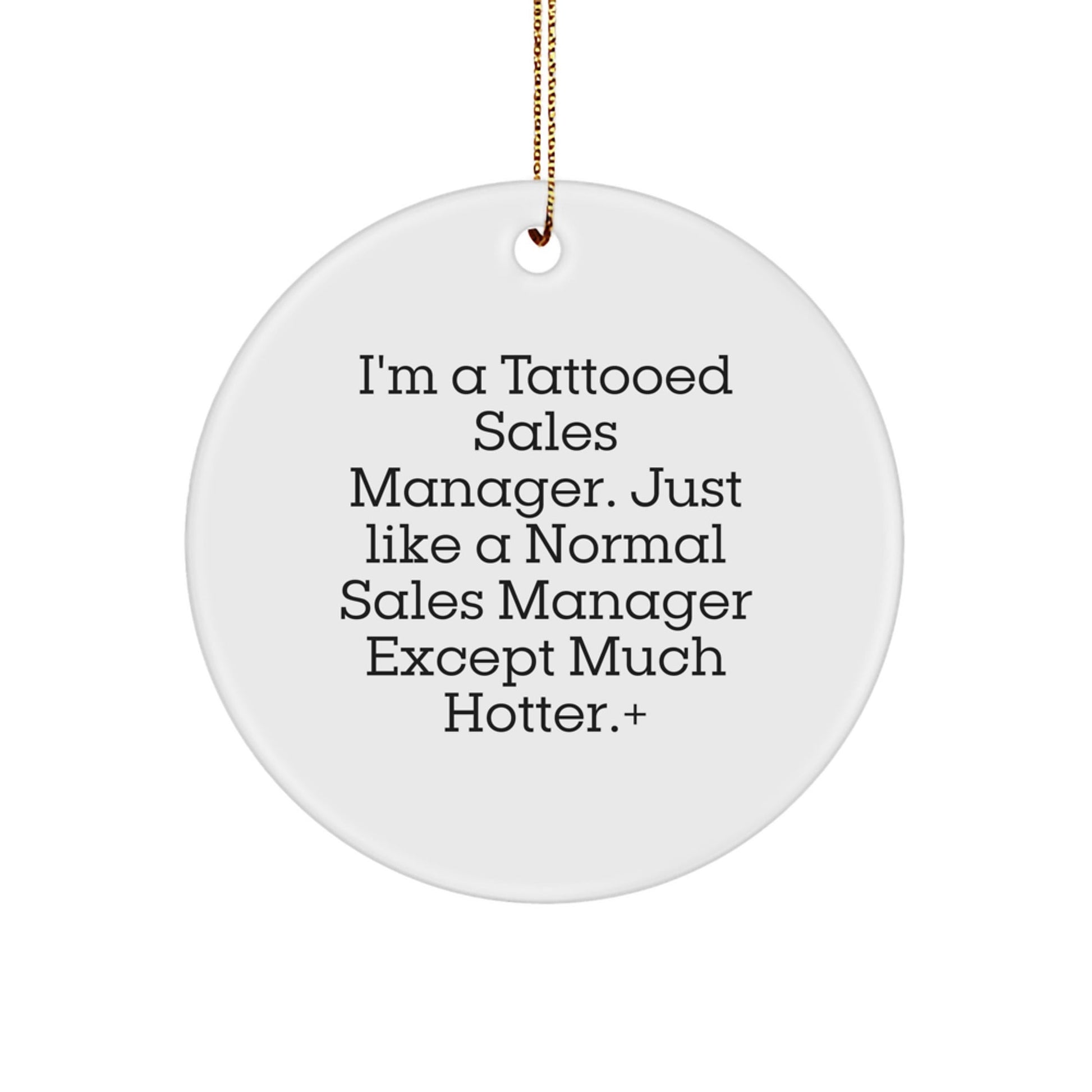 - Agregue un poco de humor a la oficina o el hogar de su gerente de ventas con este divertido adorno circular que presenta la cita "Soy un gerente de ventas tatuado..."