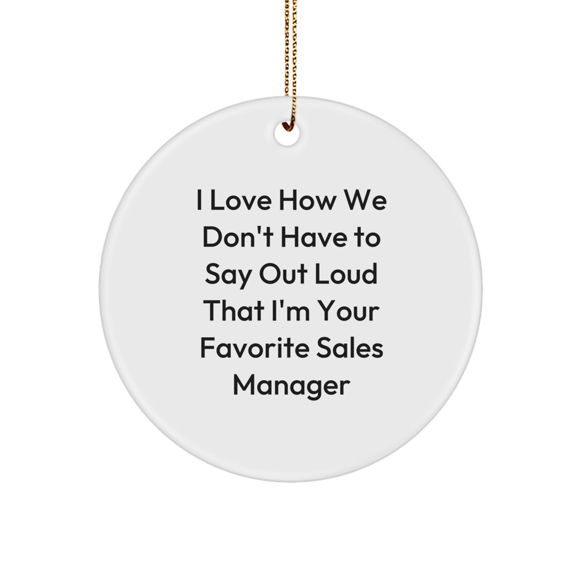¿Eres un entusiasta de los gerentes de ventas o buscas un regalo único para quien te impulsa en el mundo de las ventas? ¡No busques más! Este exquisito adorno circular incluye la frase "Me encanta que no tengamos que decirlo en voz alta: soy tu gerente de ventas favorito", que habla del vínculo entre un gerente de ventas y su equipo.