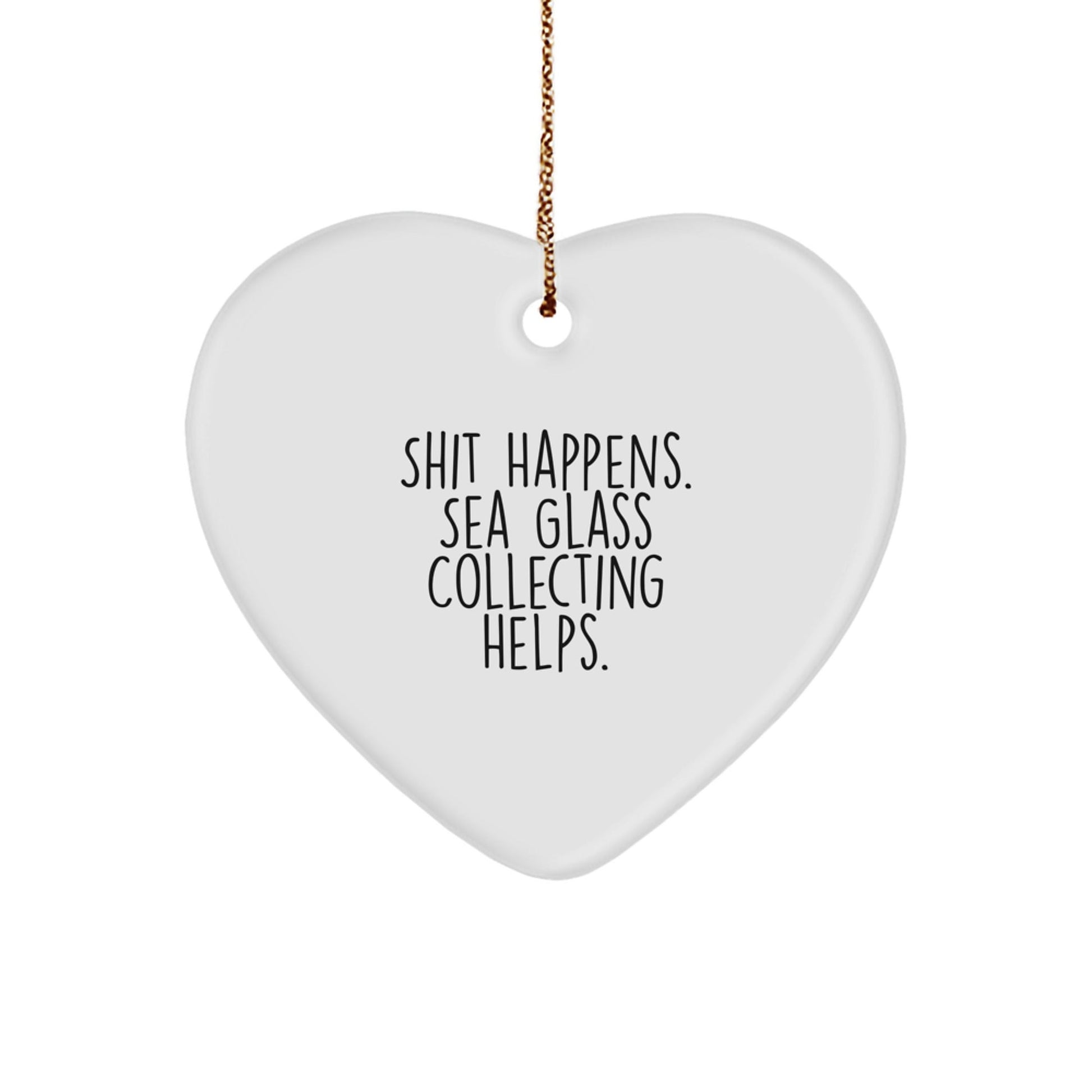 - Este adorno en forma de corazón es un regalo único y considerado para cualquier coleccionista de vidrio marino, y presenta una cita divertida y humorística que seguramente les sacará una sonrisa.