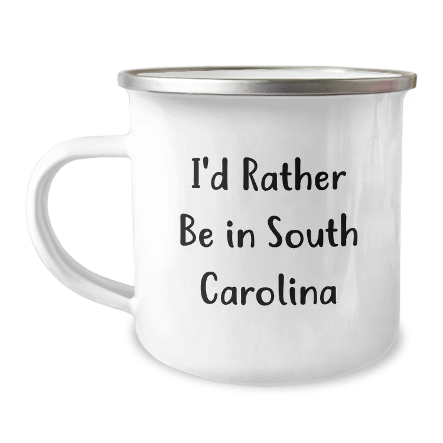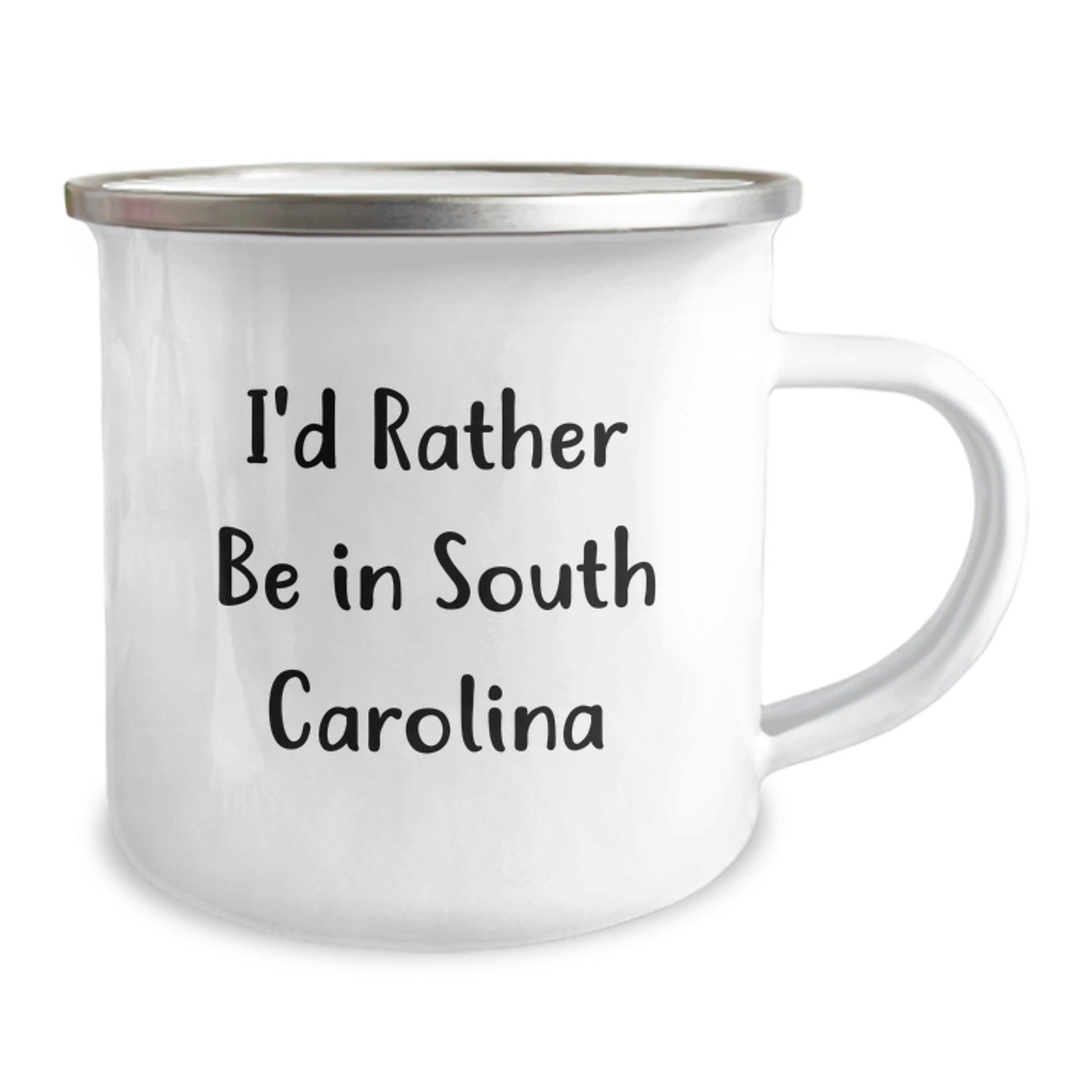 - Esta divertida taza de camping presenta la cita "Preferiría estar en Carolina del Sur" y es perfecta para regalos de graduación o cualquier ocasión.