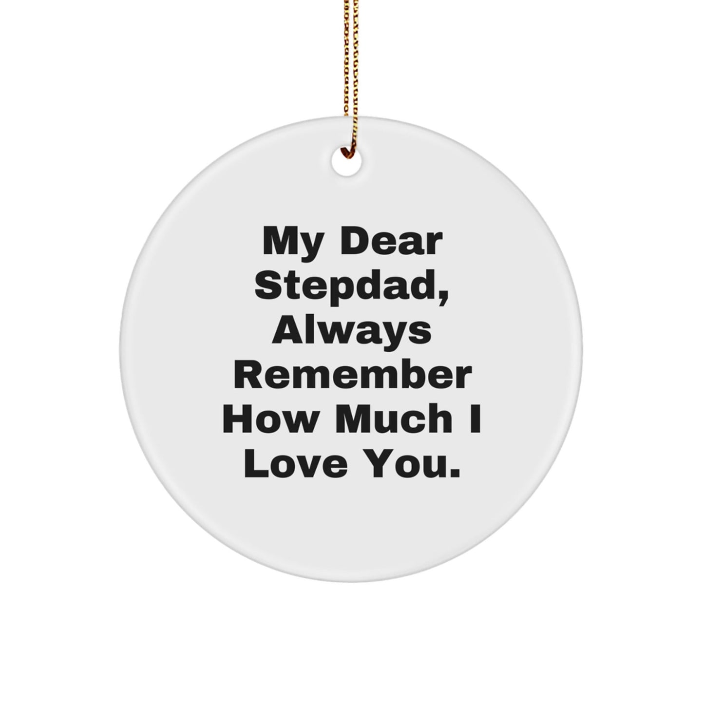 ¿Te cuesta encontrar el regalo ideal para tu gracioso y cariñoso padrastro? ¡No busques más! Este adorno circular es una forma considerada y divertida de demostrarle tu aprecio. La frase "Mi querido padrastro, recuerda siempre cuánto te quiero" es un conmovedor recordatorio del vínculo especial que comparten.