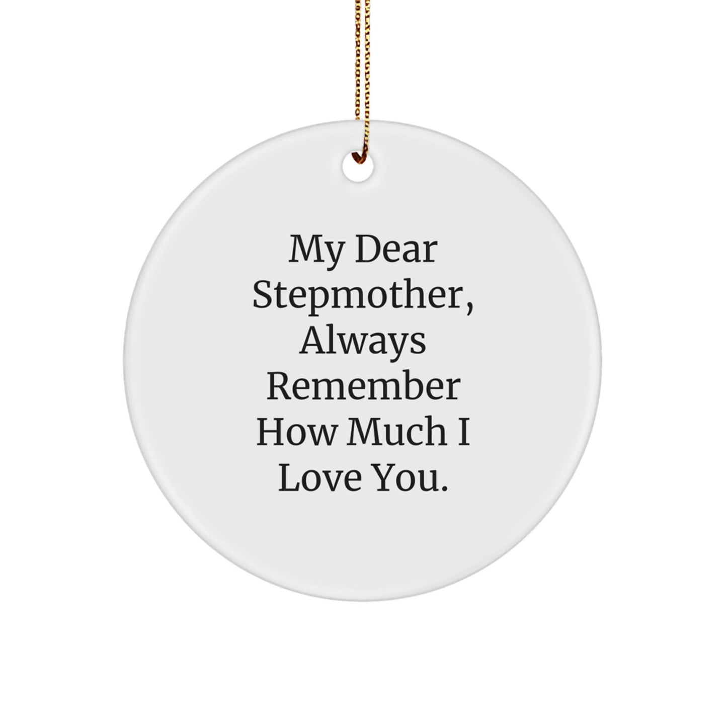 Este adorno circular de madrastra es un regalo especial para cualquier ocasión, especialmente Navidad. Sus vibrantes colores y elegante diseño lo convierten en un recuerdo preciado que tu madrastra atesorará durante años. La frase está impresa de borde a borde mediante sublimación, lo que garantiza colores brillantes y vibrantes que nunca se desvanecen. Ya seas hijastro, madrastra o simplemente alguien que quiera demostrar su amor y aprecio por su madrastra, este adorno es la opción ideal.