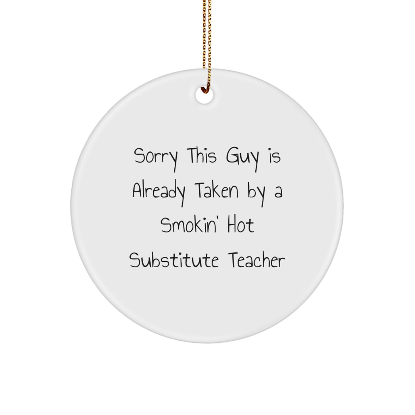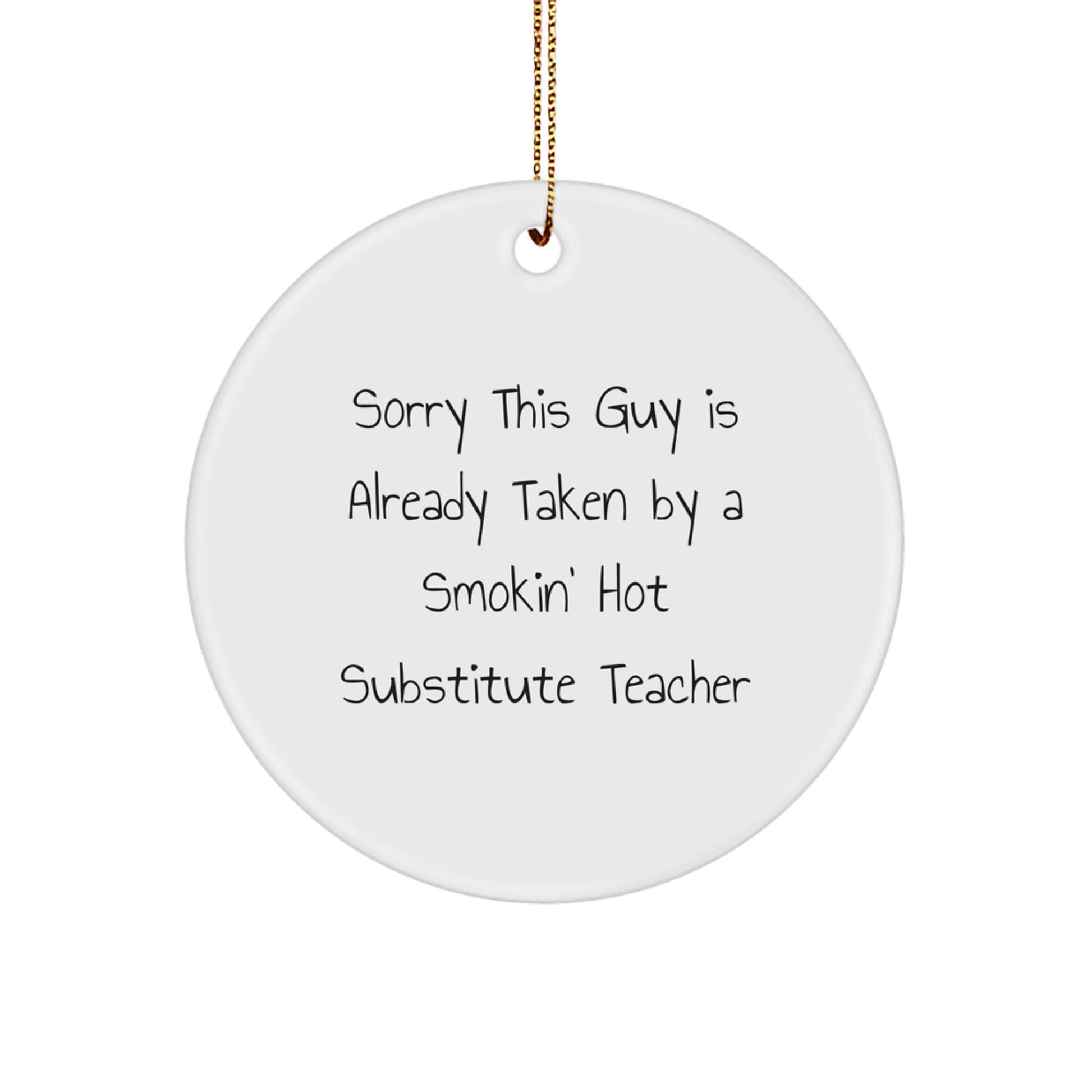 Prepárate para que la Navidad de tu profesor sustituto sea inolvidable con este divertido adorno circular con la frase "Lo siento, este chico ya está ocupado por un profesor sustituto guapísimo". Es el regalo ideal para demostrar tu agradecimiento por su esfuerzo y dedicación. Este resistente adorno circular de MDF está elaborado con un acabado plástico de alto brillo e impreso con colores vibrantes y vivos. Ligero y resistente a las roturas, es una excelente opción para hogares con niños o mascotas. El festivo cordón dorado lo hace fácil de colgar, perfecto para una decoración sin estrés. Dale a tu profesor sustituto favorito un regalo único y considerado que le sacará una sonrisa. Ya seas un colega, un amigo o un familiar, este adorno seguro que será un éxito. ¿A qué esperas? ¡Haz que esta Navidad sea inolvidable con este divertido adorno circular para profesor sustituto!