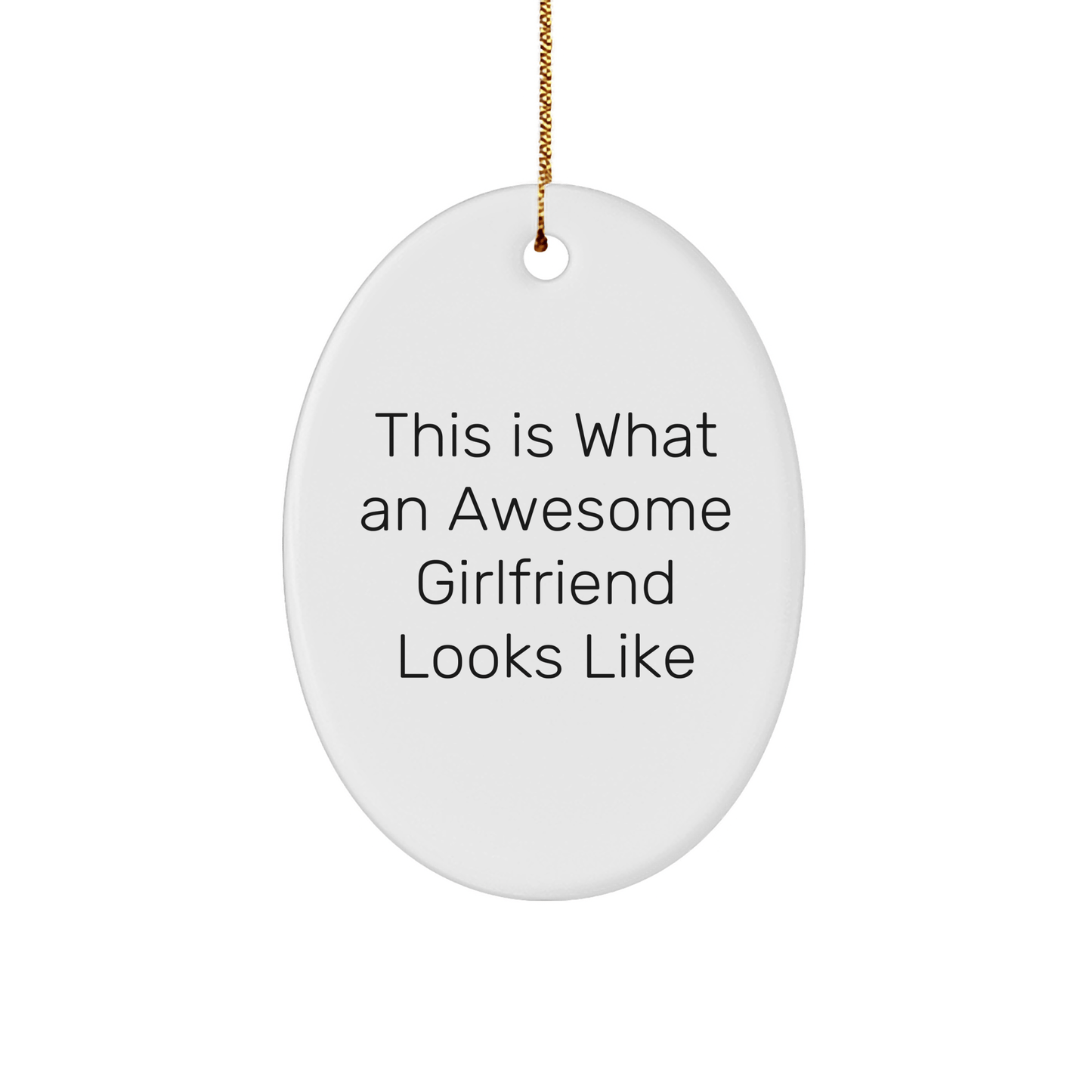 ¿Buscas un regalo especial para tu increíble novia? ¡No busques más! Este precioso adorno ovalado es la manera perfecta de demostrarle cuánto la quieres. Con sus vibrantes colores y su divertida frase "Así es como se ve una novia increíble", seguro que le sacará una sonrisa. Tanto si eres hombre como mujer, este detalle es una forma fantástica de celebrar lo maravillosa que es tu novia. Además, es ligero y resistente, ideal para hogares con niños o mascotas. ¿A qué esperas? Regálale a tu novia este regalo único y especial esta Navidad.