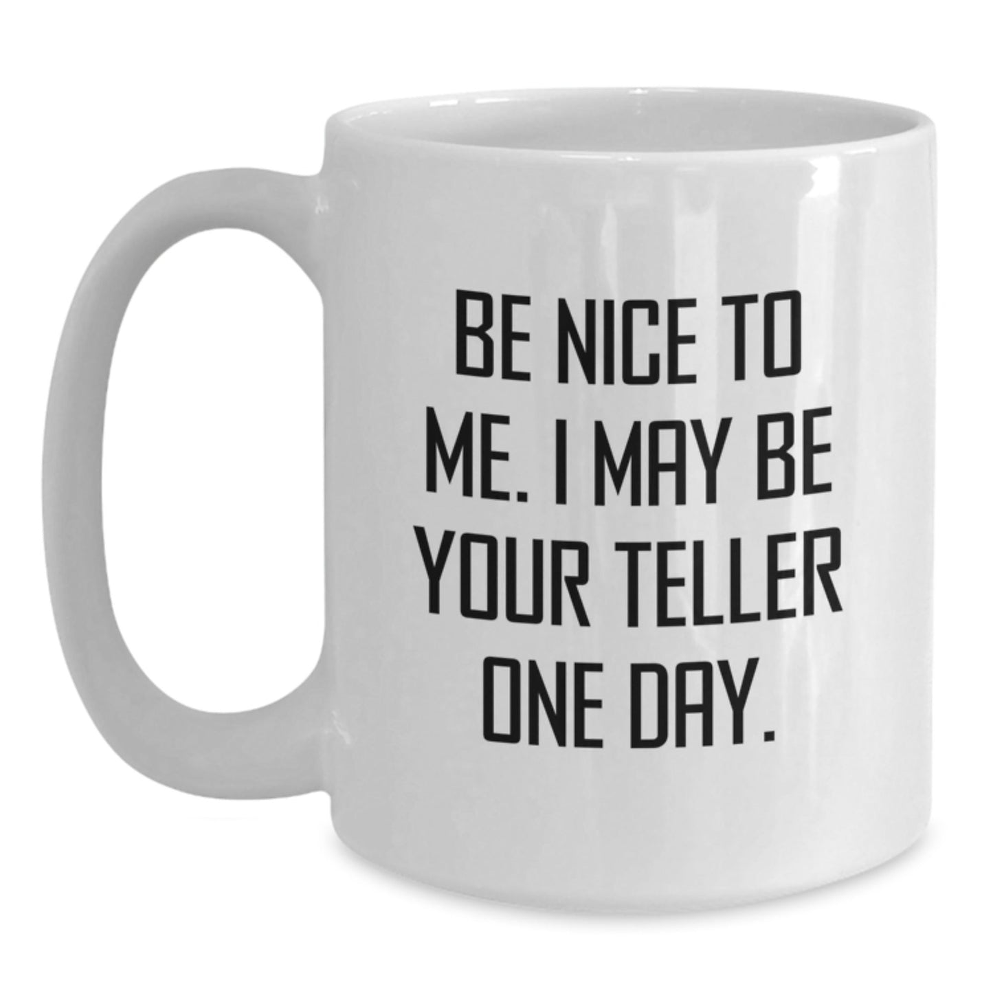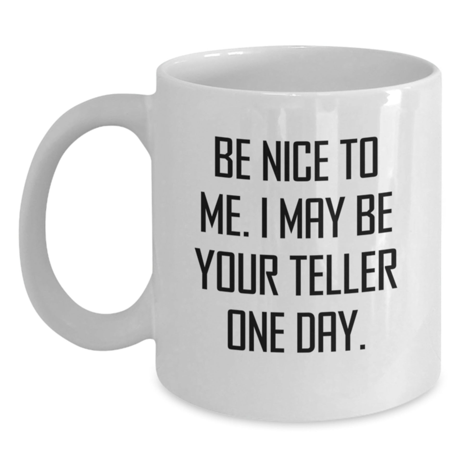 Esta taza es el regalo ideal para quienes trabajan con cajeros, incluyendo estudiantes, profesionales y cualquier persona que haya tenido que lidiar con un cajero de banco. La frase es divertida y conmovedora, y su color blanco la hace ideal para combinar con cualquier atuendo. ¿Por qué no regalarle este regalo a tu cajero hoy mismo?