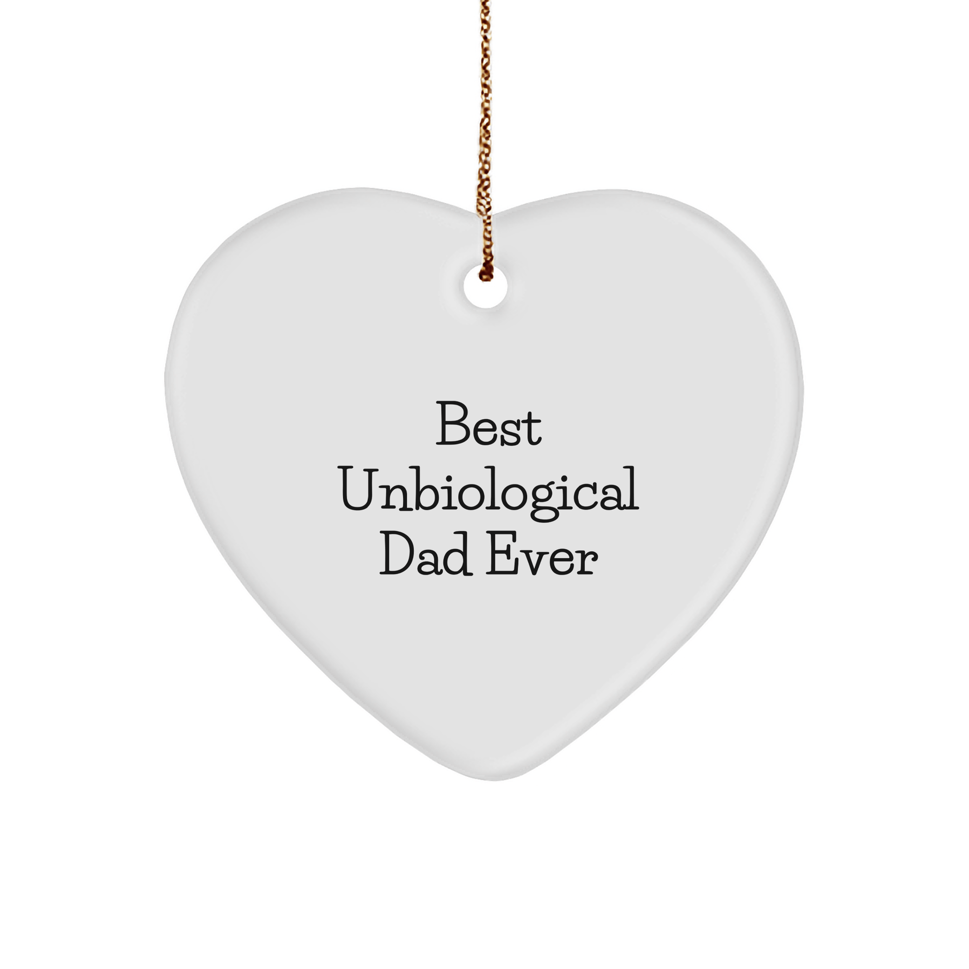 - Haz un regalo único y considerado para el padre no biológico de tu vida con este adorno en forma de corazón que incluye la frase "El mejor padre no biológico de todos los tiempos".